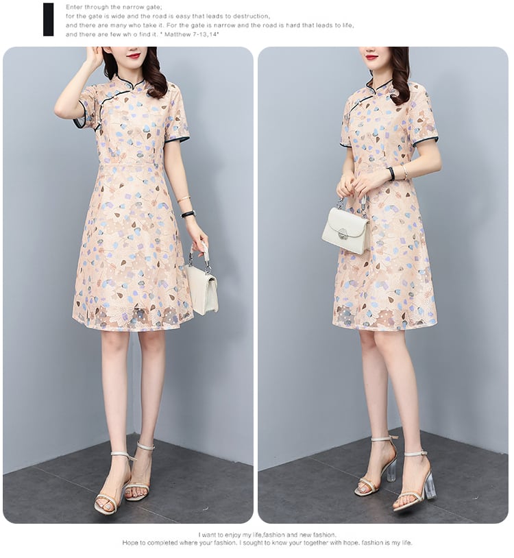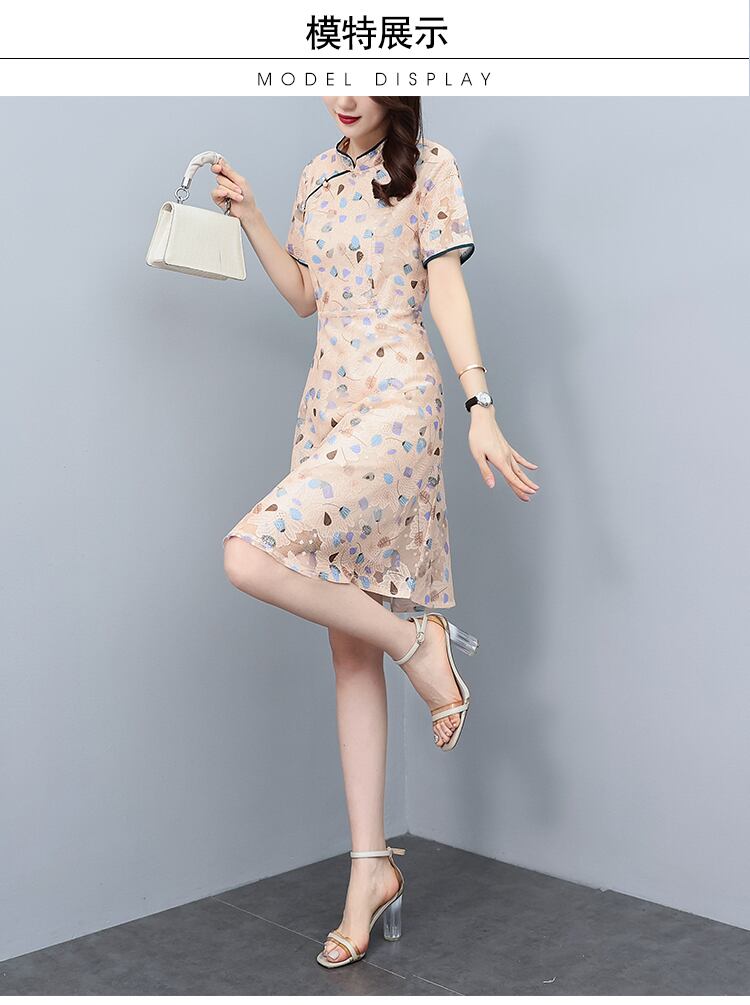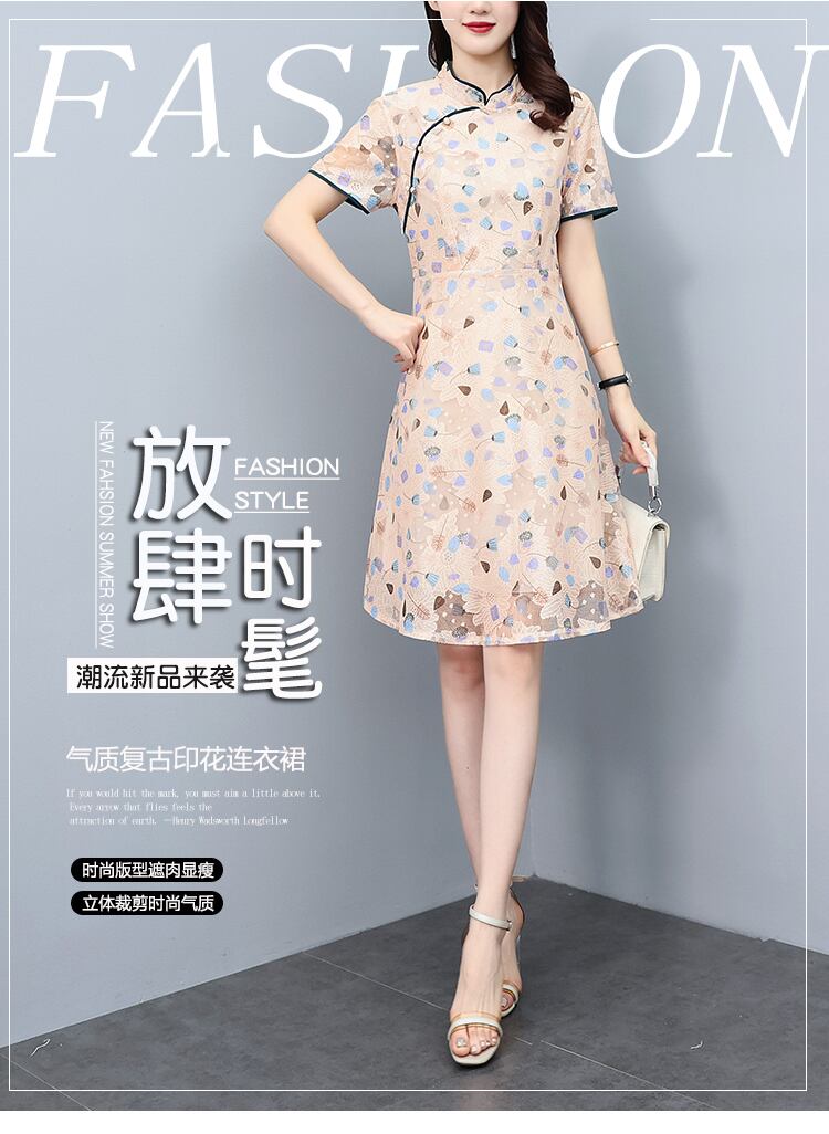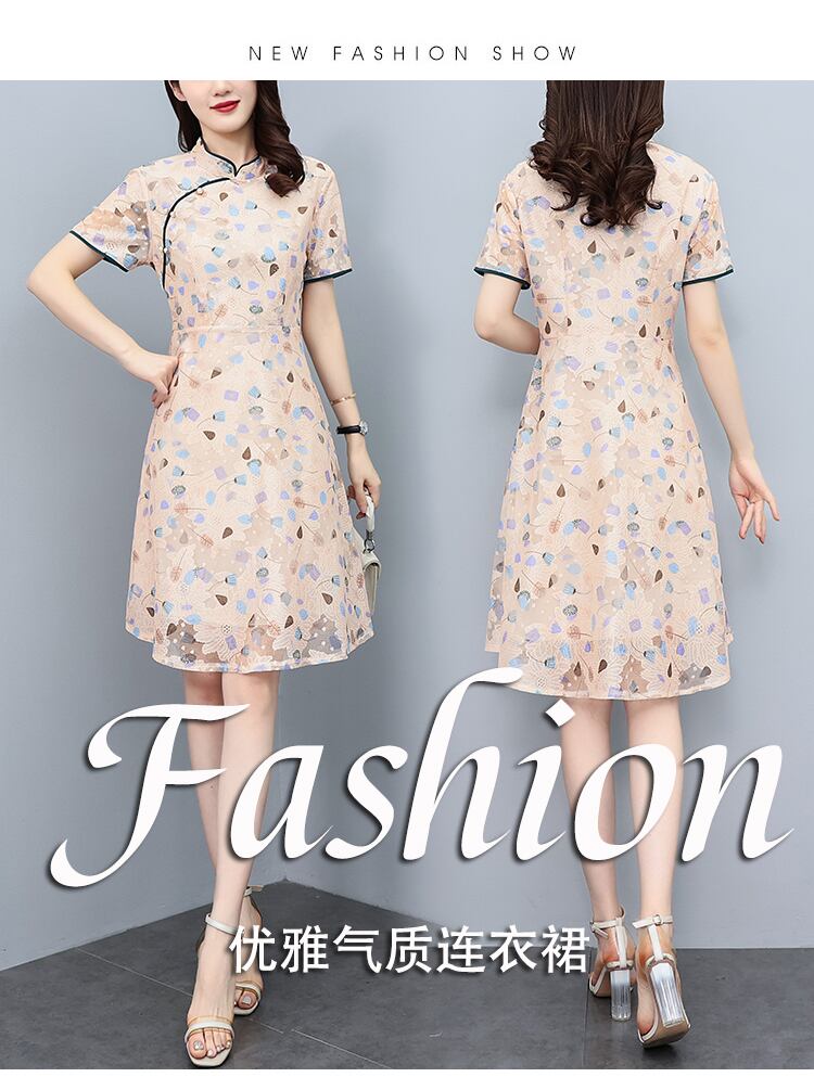 自然派スタイルスリムドレス サマーレースプリント柄スカート 大きめサイズ 夏物 muto42722879106