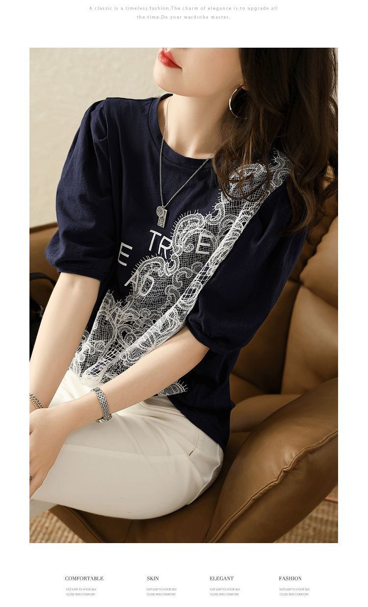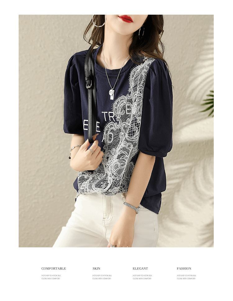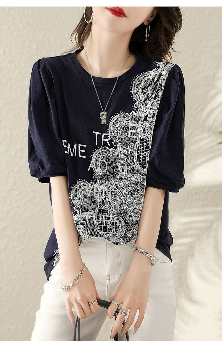 Tシャツ サマーレースルーズ薄手トップス 大きめサイズ 夏物 muto61400681674
