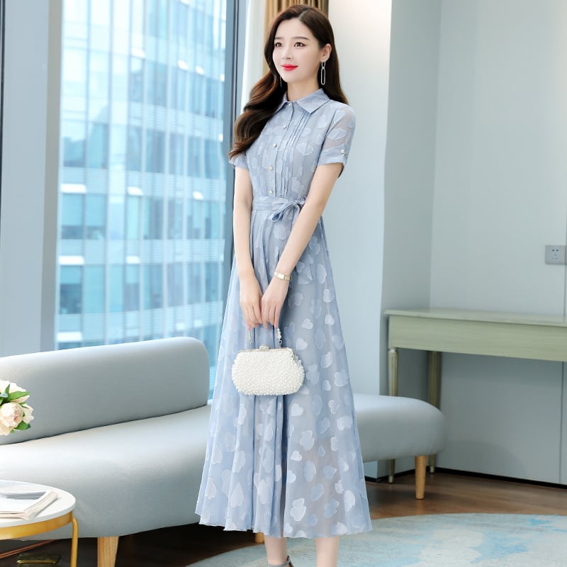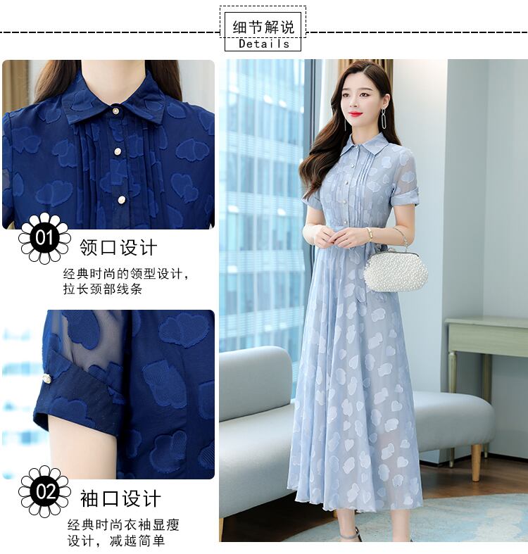 シフォンドレス サマースリムフィット半袖スリーブジャカードスカート ショート ハーフスリーブ 大きめサイズ 夏物 muto79372821085