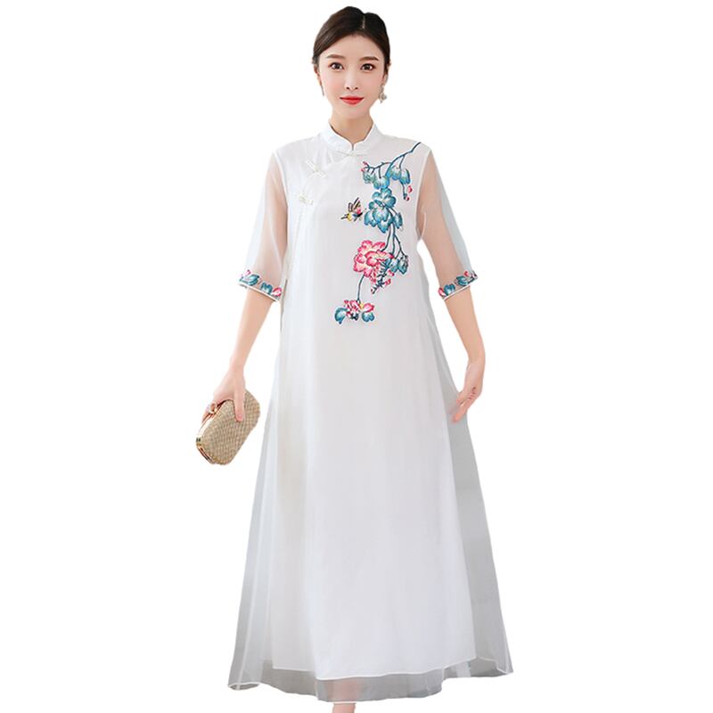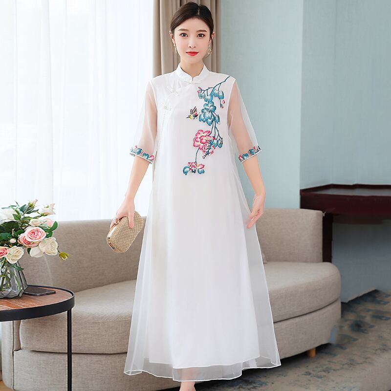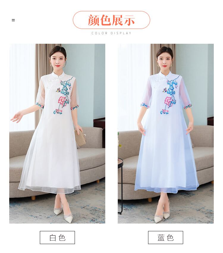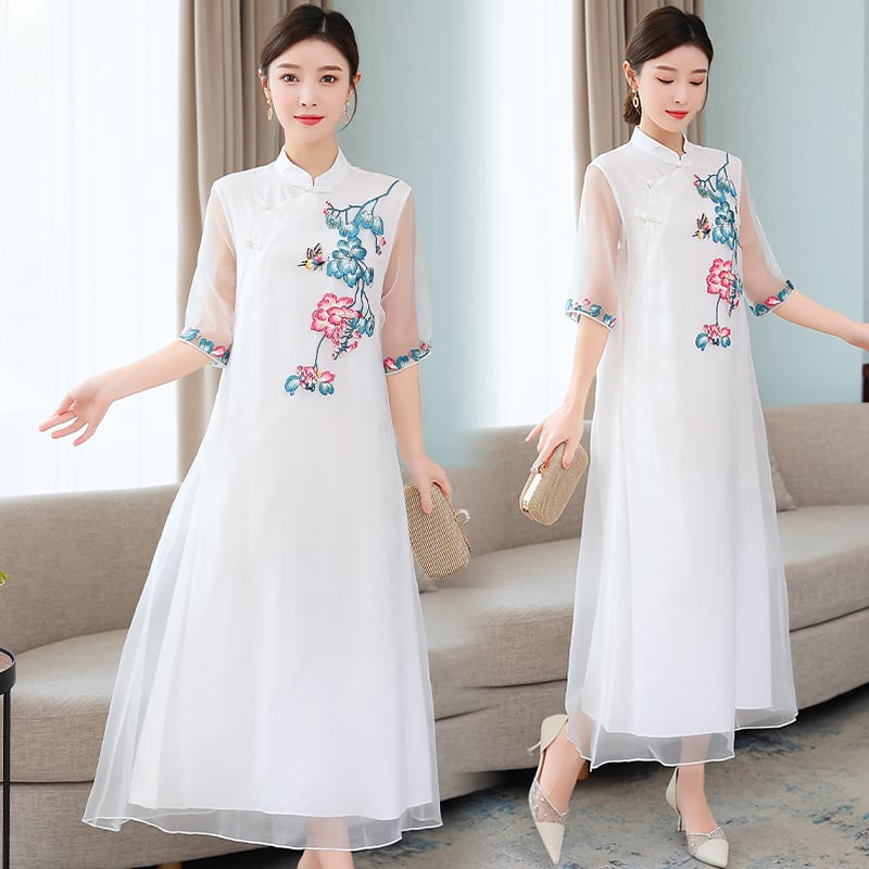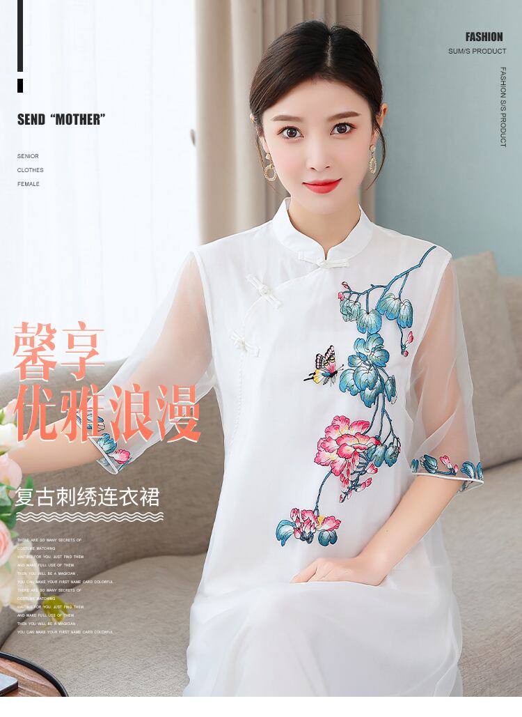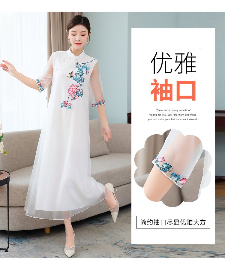 刺繍サマースタイルスタンダードドレス レトロ 大きめサイズ 夏物 muto31194311924