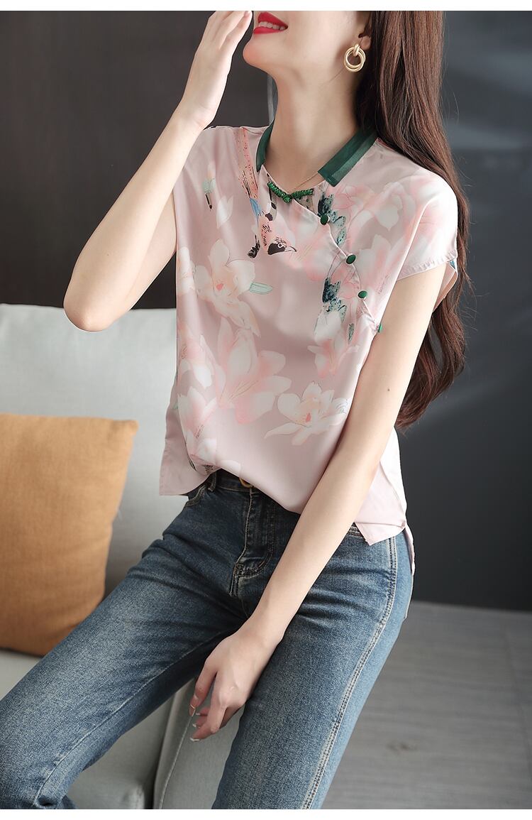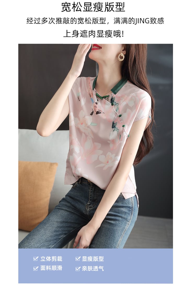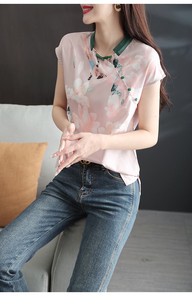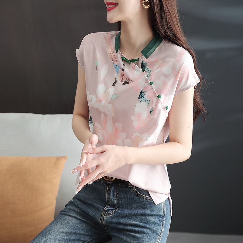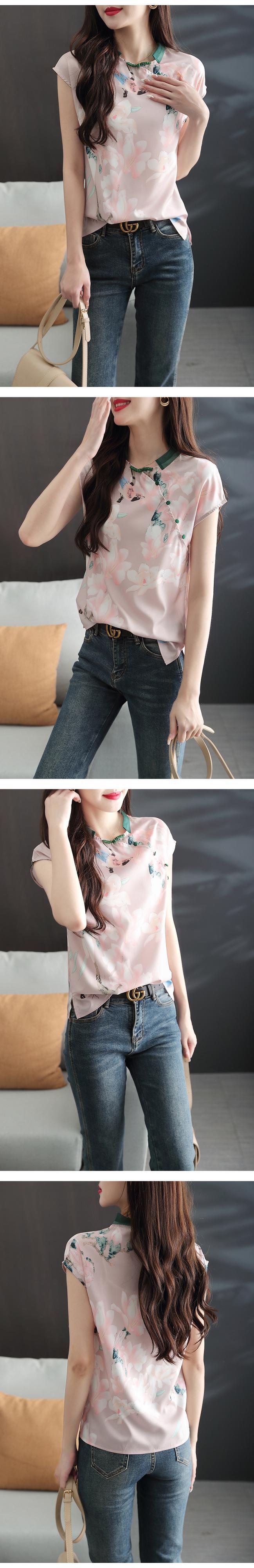 サマートップス スタンダードスタイルフローラルシャツ シフォン レトロ 大きめサイズ 夏物 花柄 muto36755540507