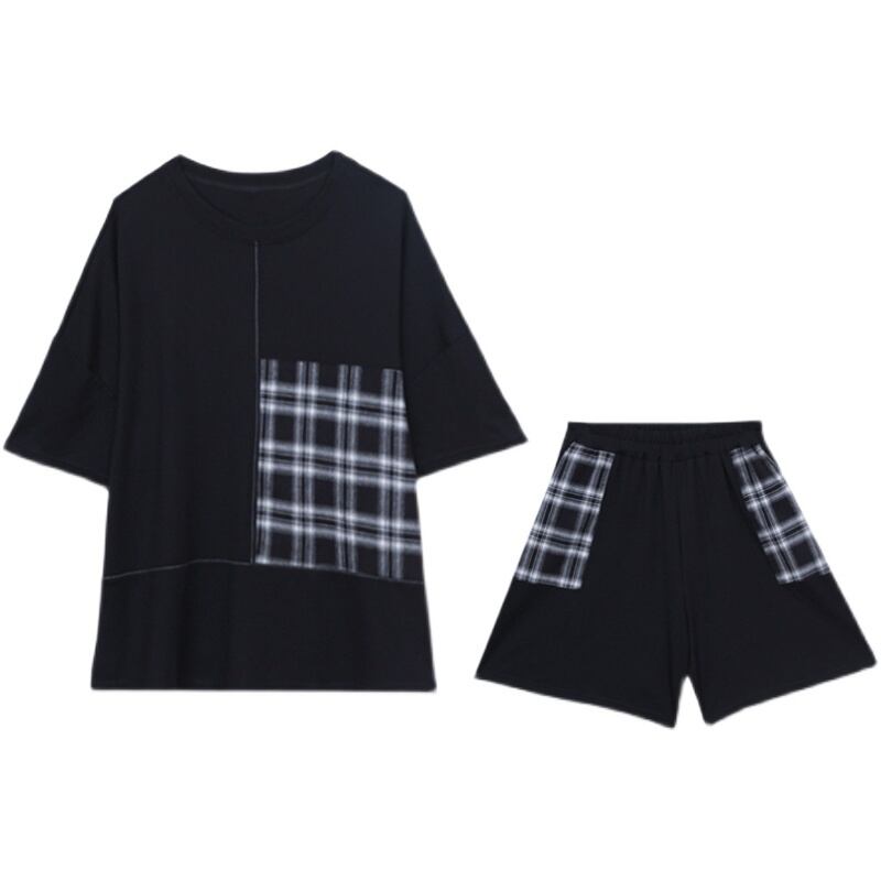 格子柄ショーツ サマーカジュアルパンツ セット 大きめサイズ 夏物 ブルマー ステッチ muto61447107966