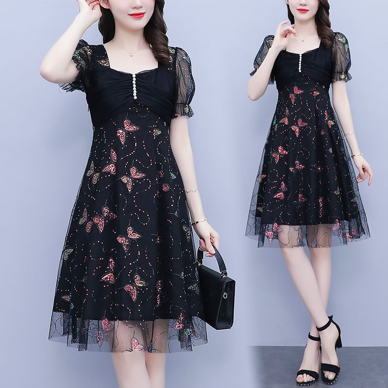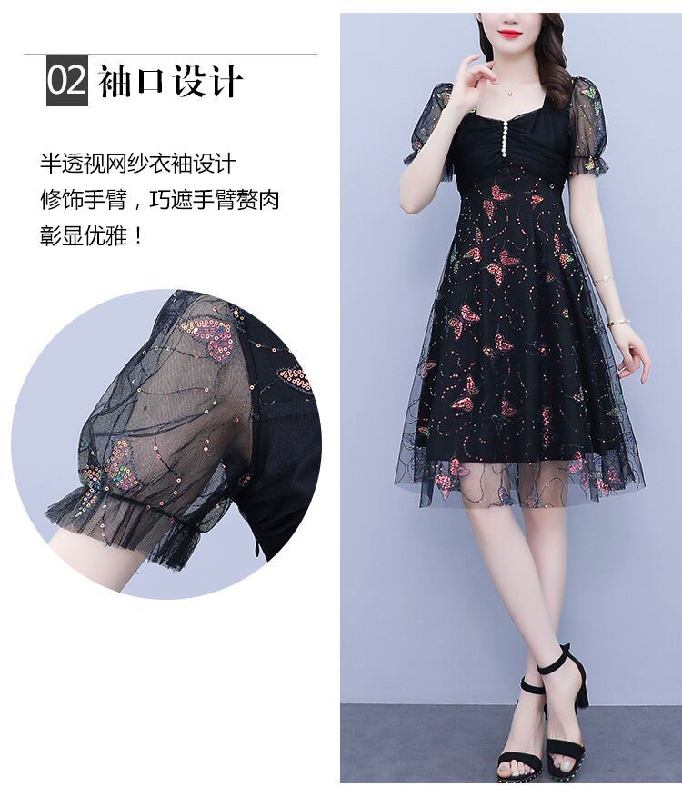 メッシュドレス サマーカラースリムスカート レッド 刺繍 大きめサイズ 夏物 スクウェア muto89423590862