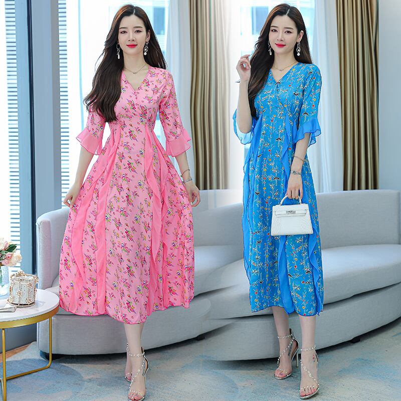 ドレス サマーストレッチウェストロングスカート エラスティック 伸縮 大きめサイズ 夏物 muto969797122
