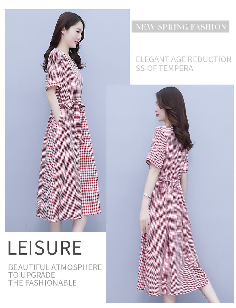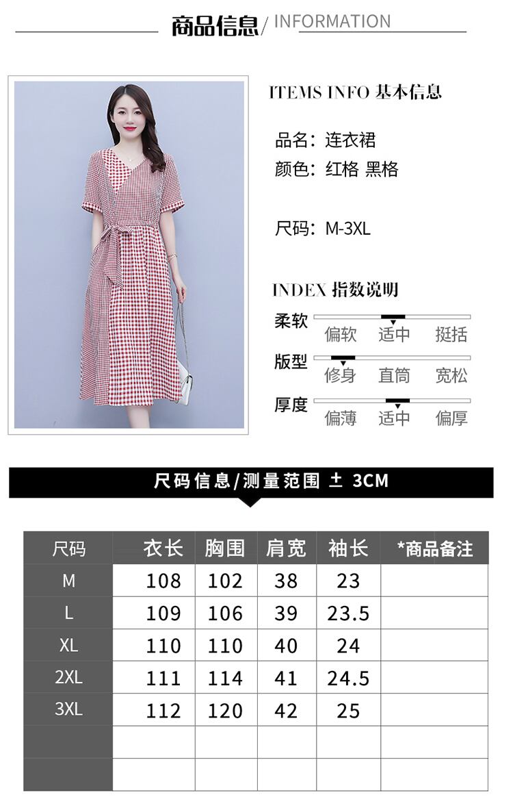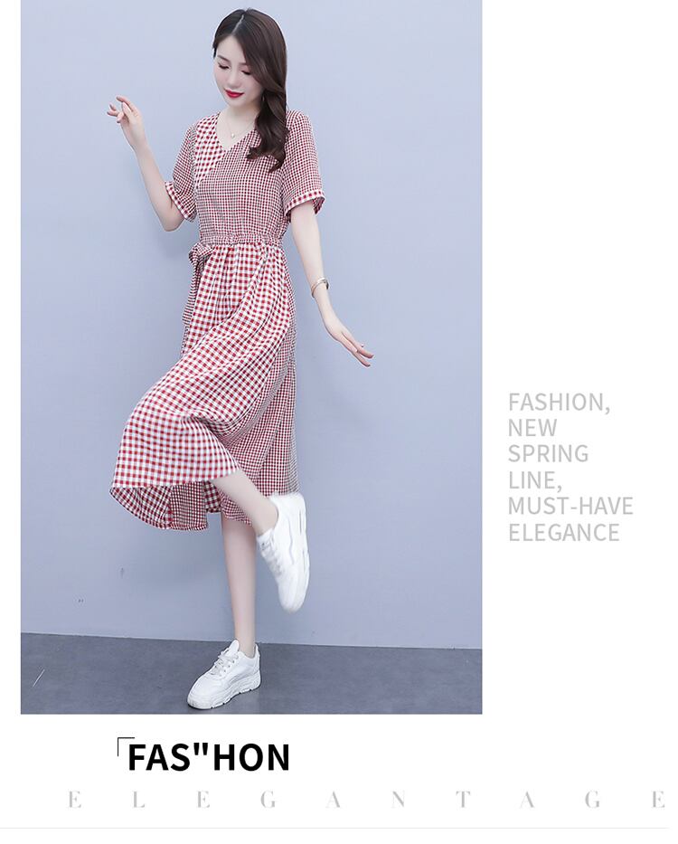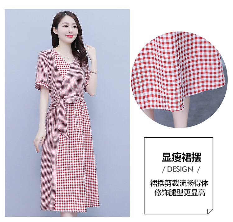 サマー薄手ドレス スリムロング格子柄スカート 大きめサイズ 夏物 muto25296253254