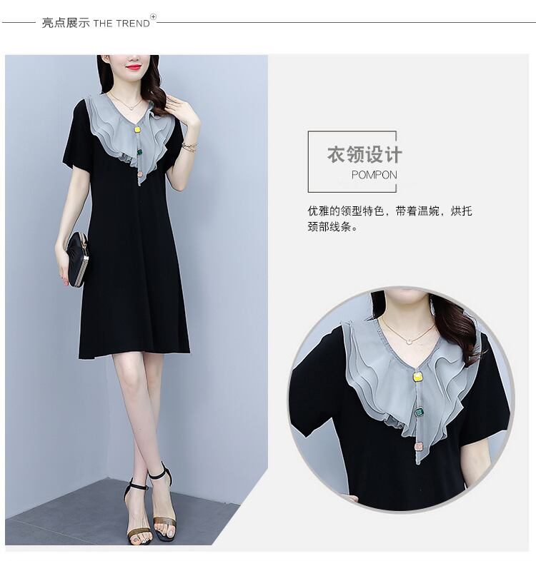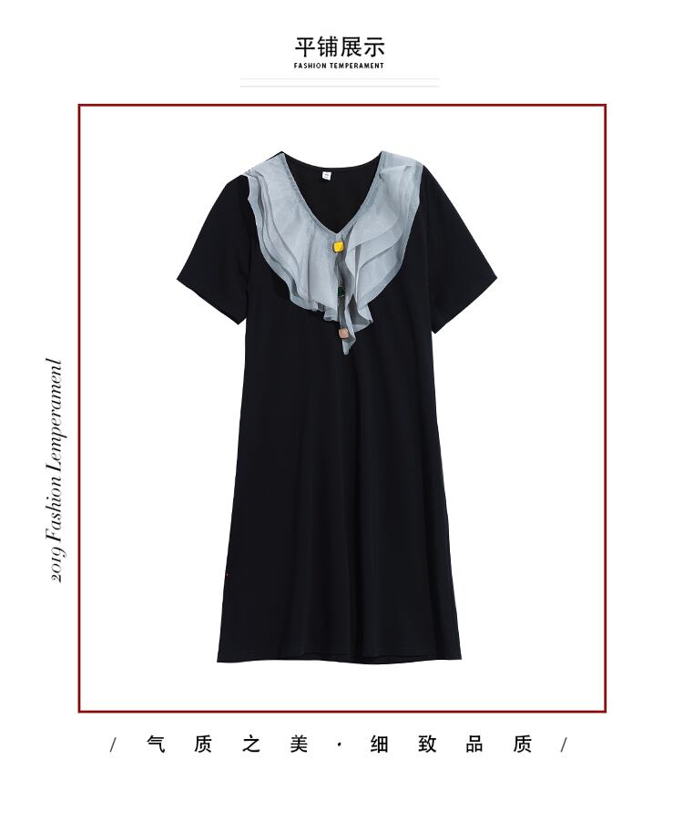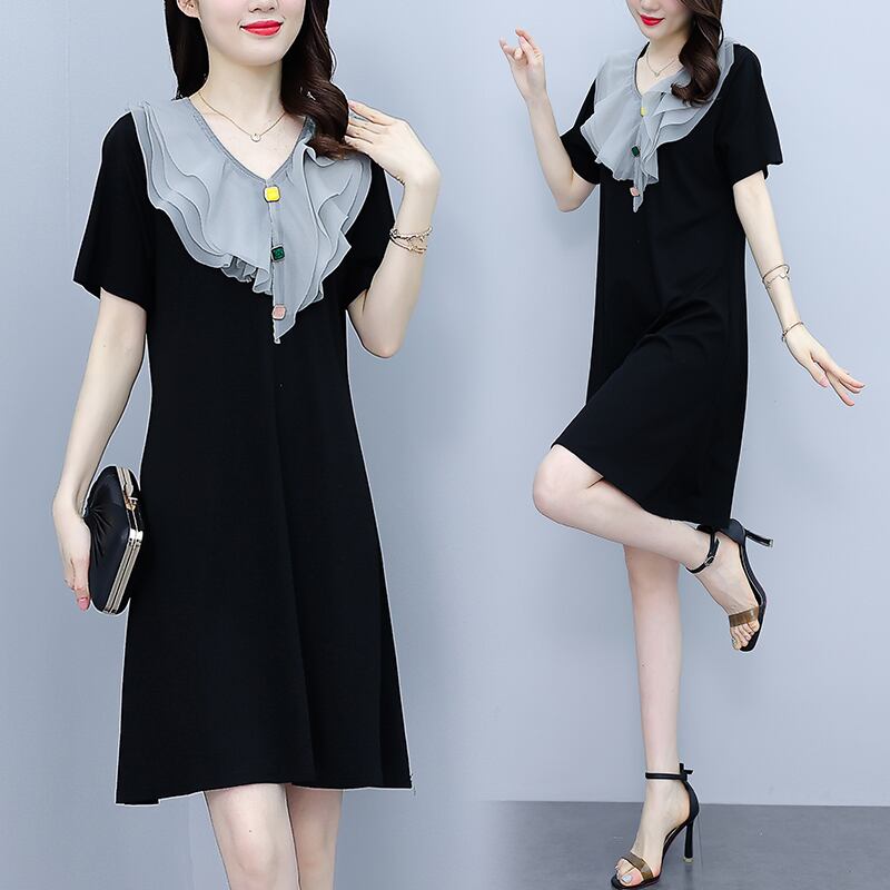 カラーVネックルーズ薄手ドレス サマーブラック 大きめサイズ 夏物 muto4251341502