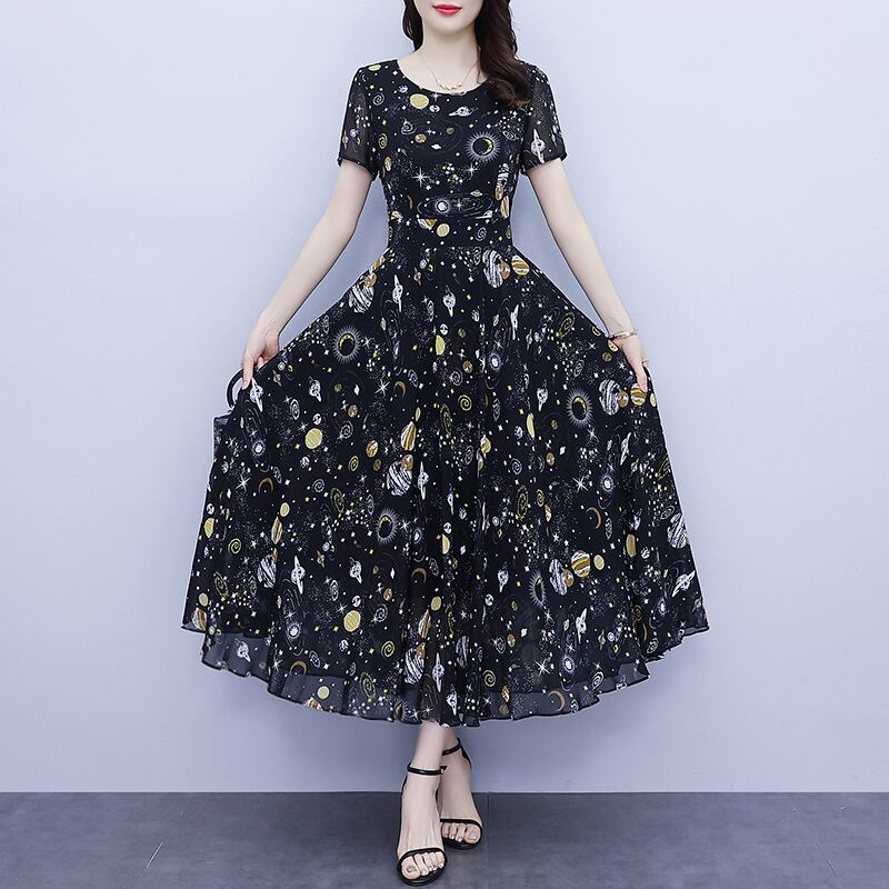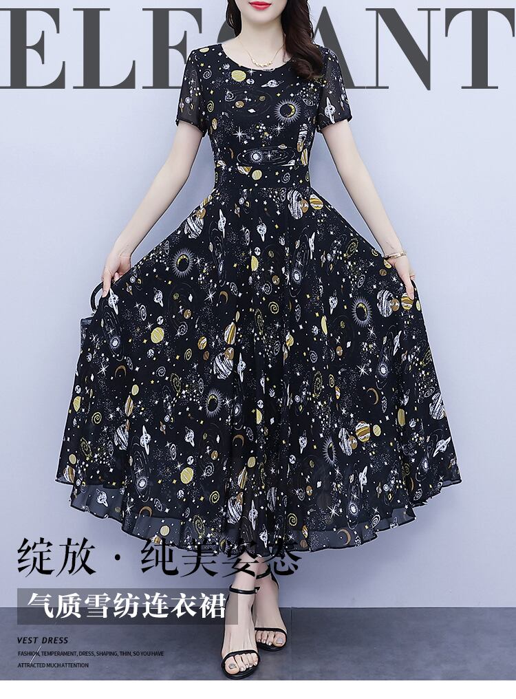 薄手シフォンドレス サマープリントアンクルロングスカート 大きめサイズ 夏物 muto19786481684