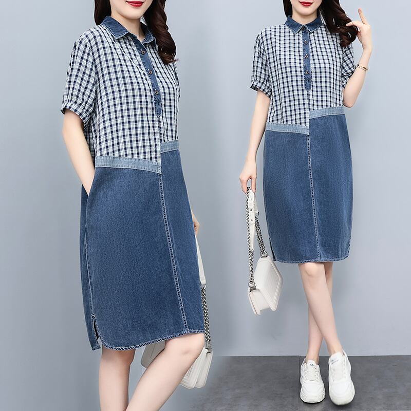格子柄ドレス サマールーズシャツ スカート 大きめサイズ 夏物 ステッチ muto12277811648