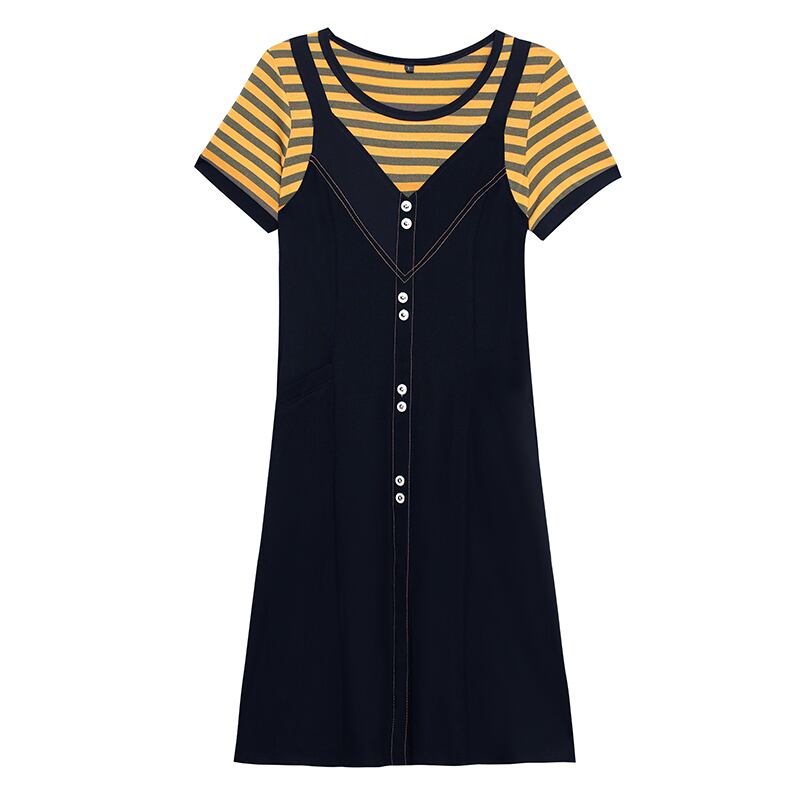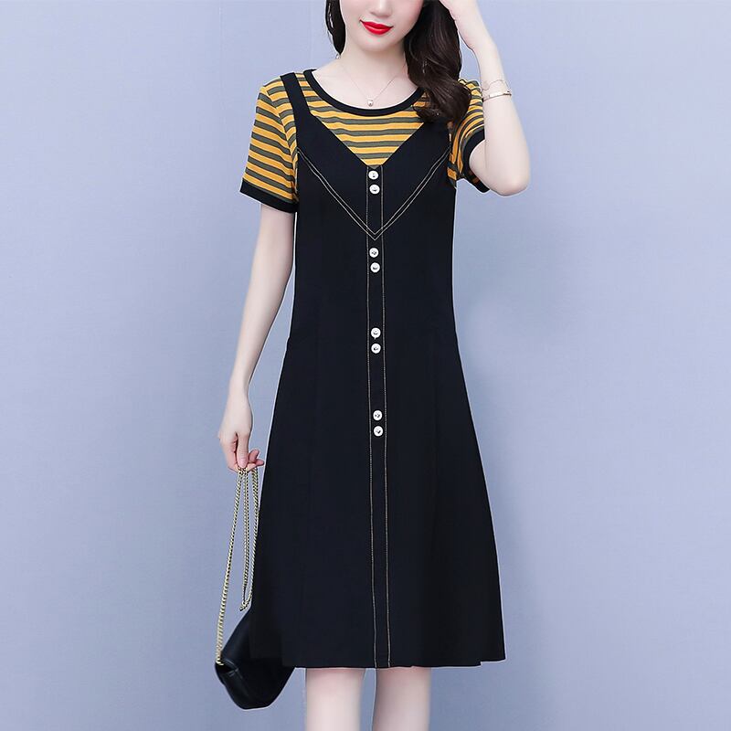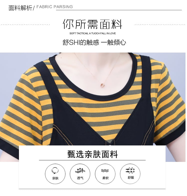 ストライプドレス サマールーズ薄手スカート 大きめサイズ 夏物 ステッチ muto75213852829
