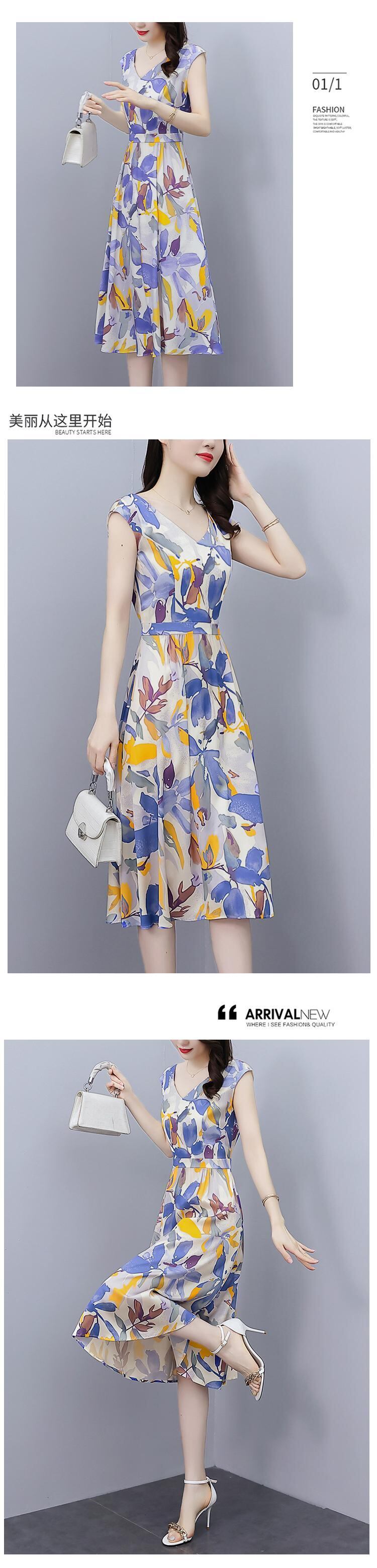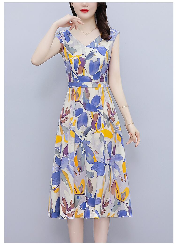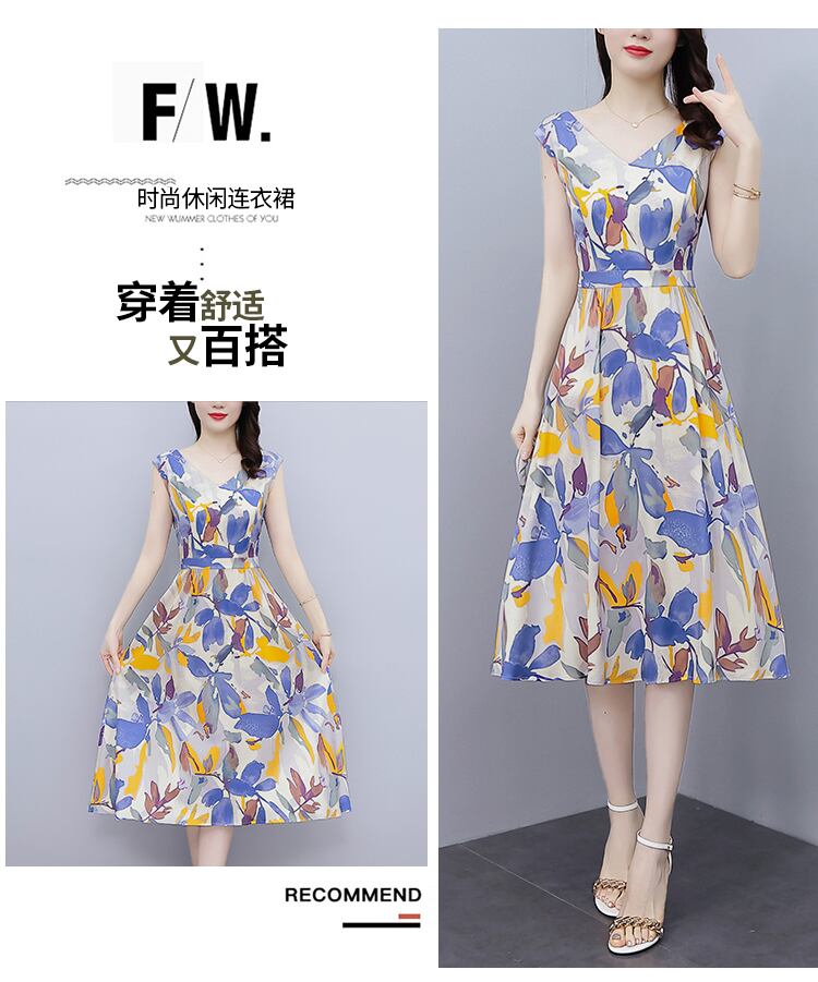 プリントVネックノースリーブスカート サマースリムドレス 大きめサイズ 夏物 muto93770737828