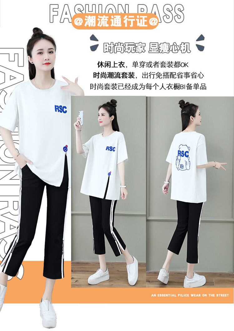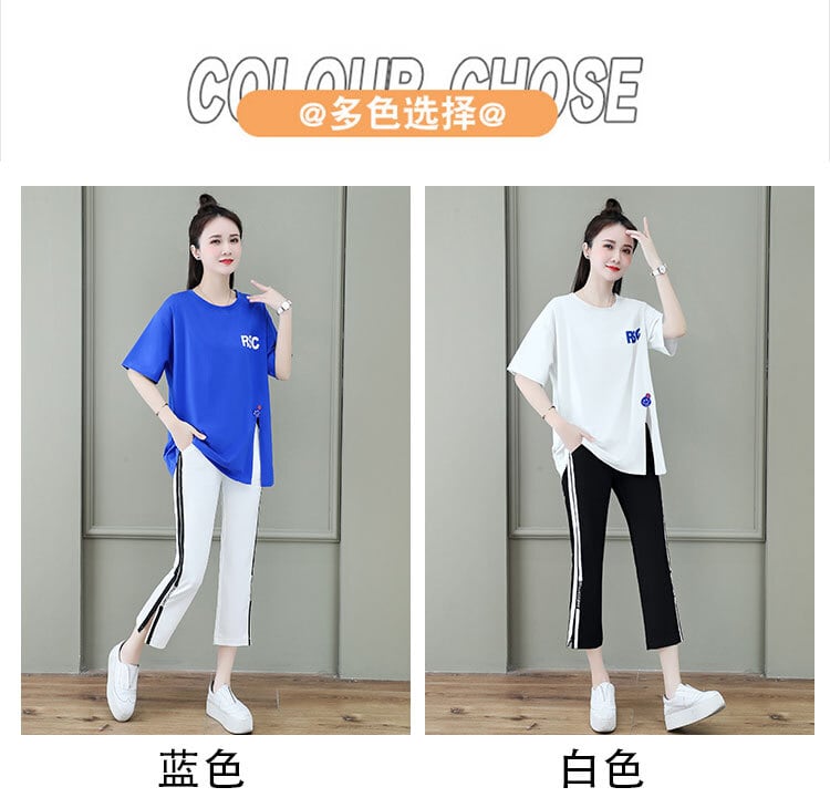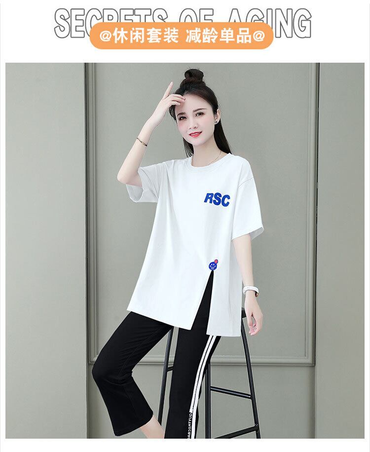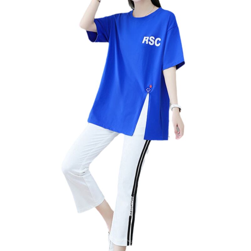 スリットプリント柄Tシャツ カジュアルパンツ サマールーズ薄手トップス セット 大きめサイズ 夏物 muto46767252619