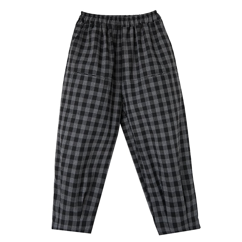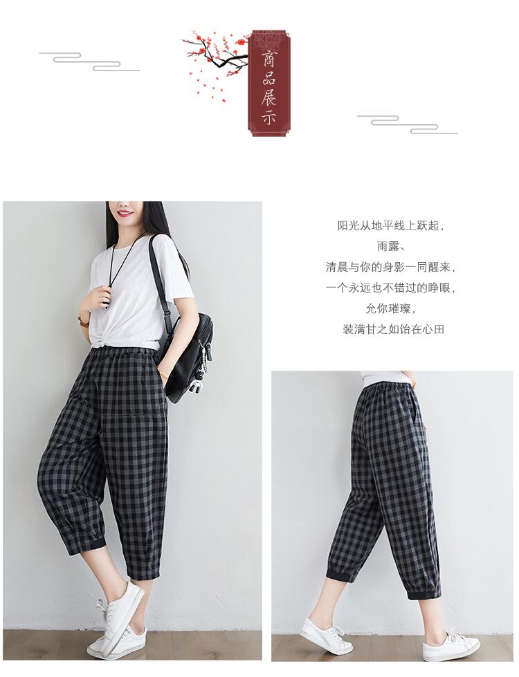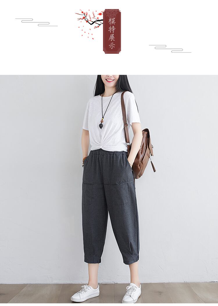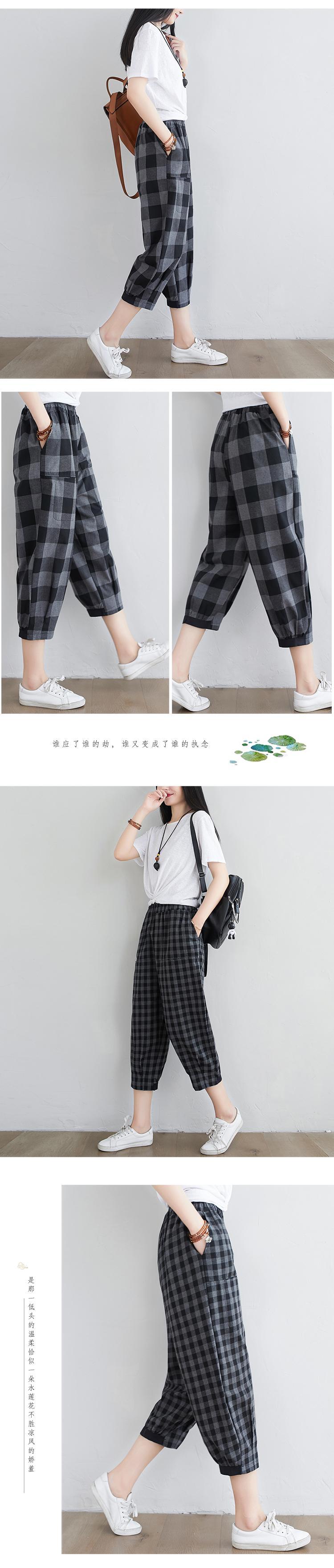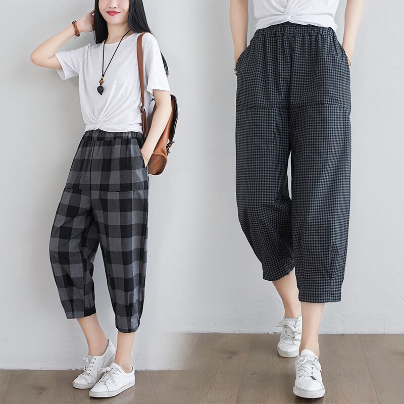 パンツ ルーズ薄手カジュアルクロップドサマー格子柄 コットン 大きめサイズ 夏物 muto93010382326
