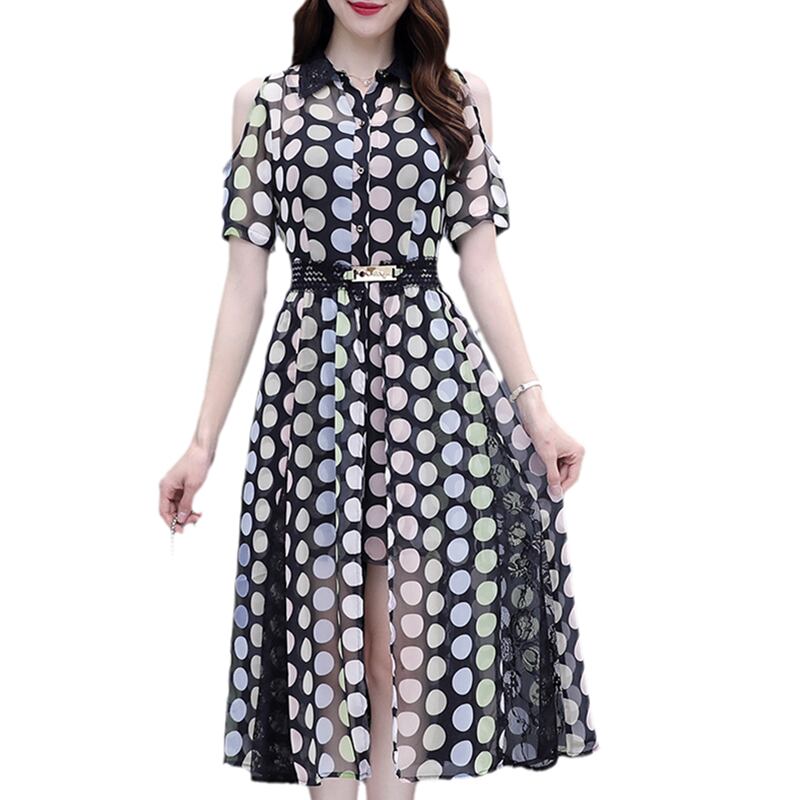 ドレス サマー水玉シフォンスカート 大きめサイズ 夏物 muto57238385942