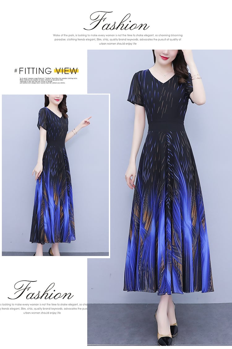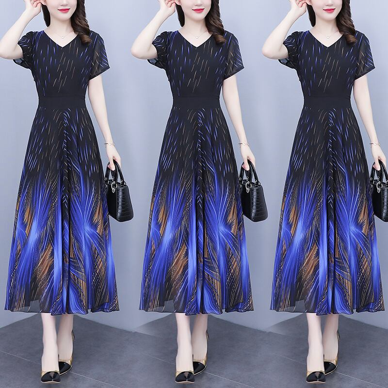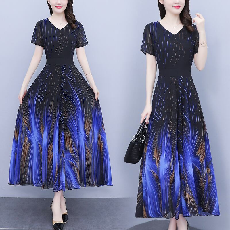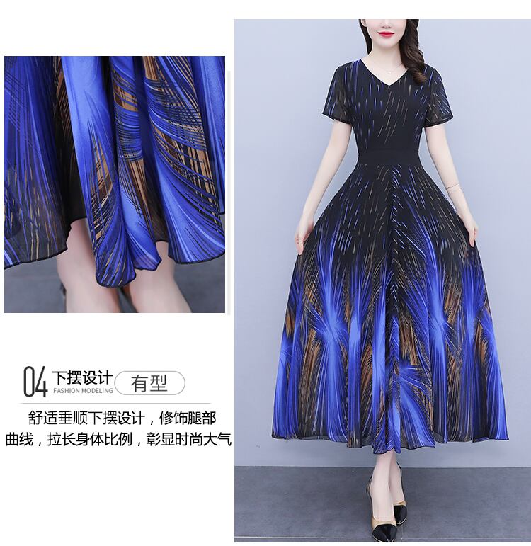 ラウンドネックロングシフォンドレス サマー薄手 大きめサイズ 夏物 ビーチ Oネック muto79110588303