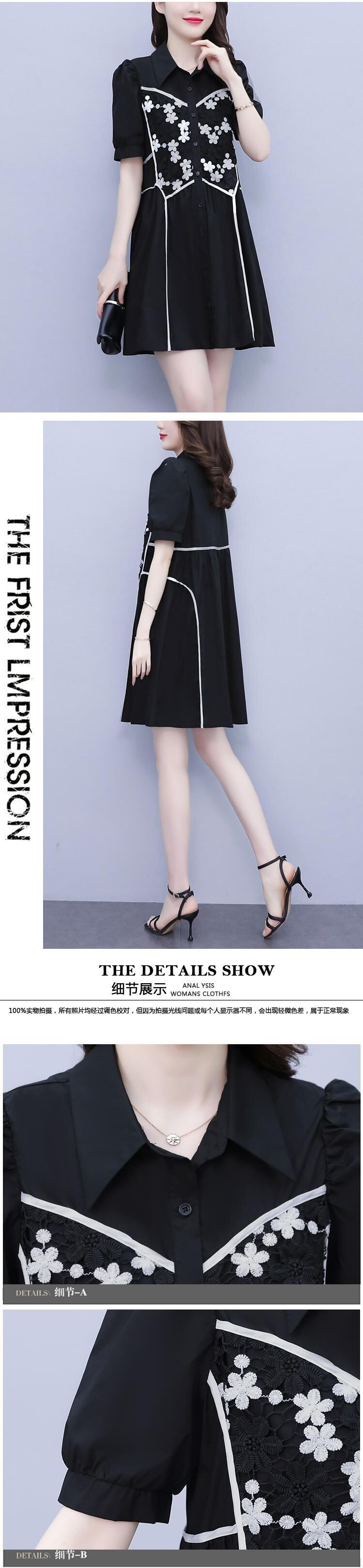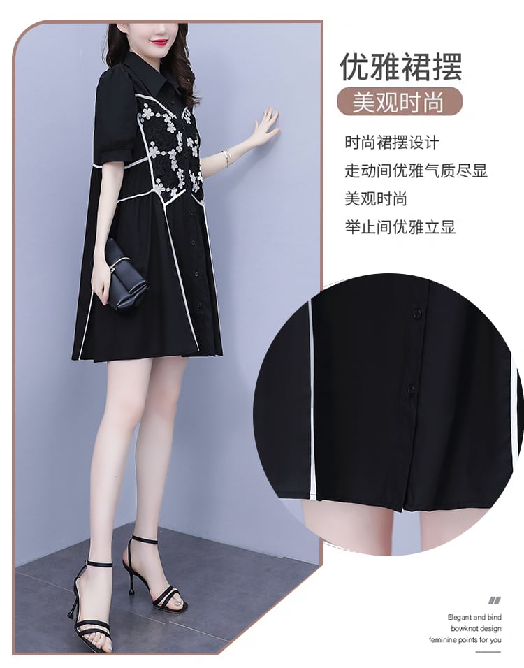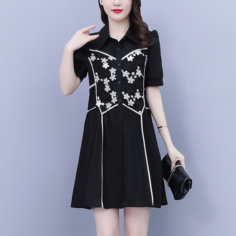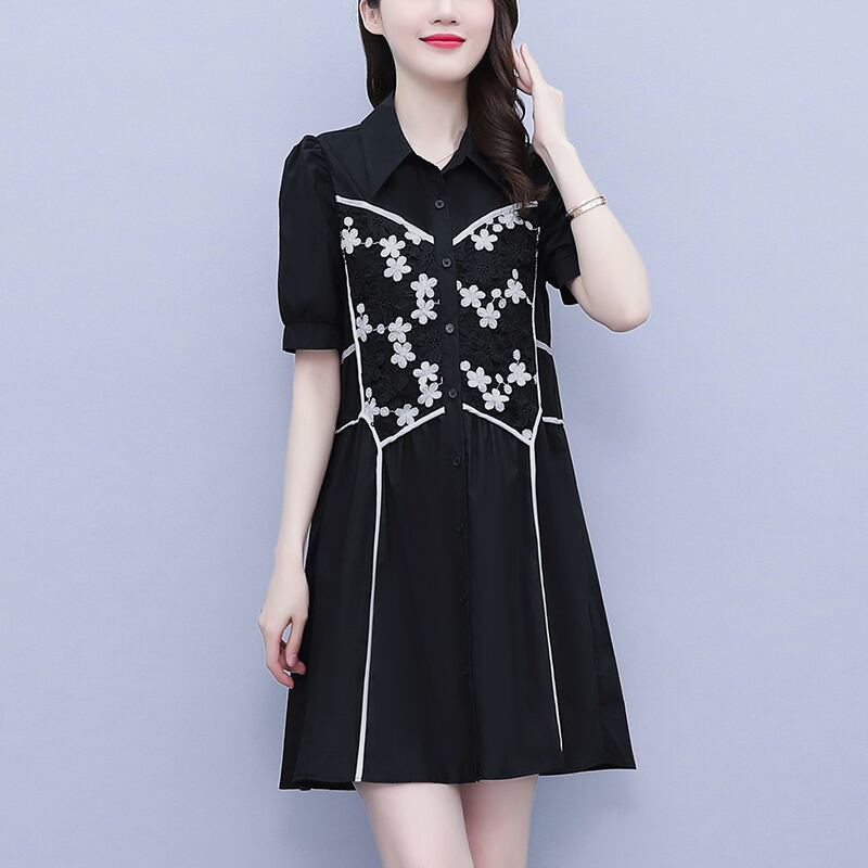 サマーカラーシャツ スカート レディースルーズ薄手カジュアルドレス レッド 刺繍 大きめサイズ 夏物 muto68322238896