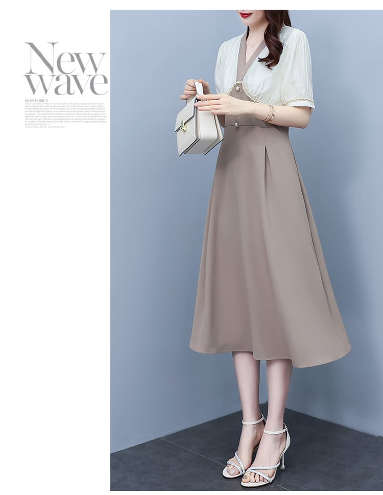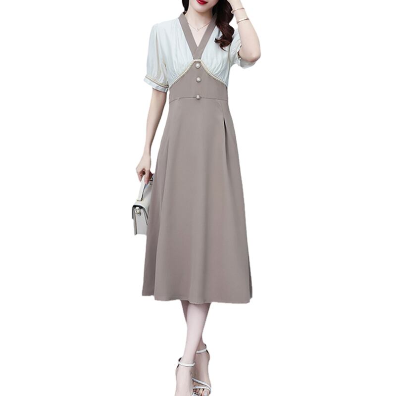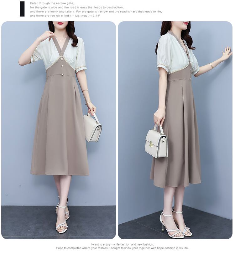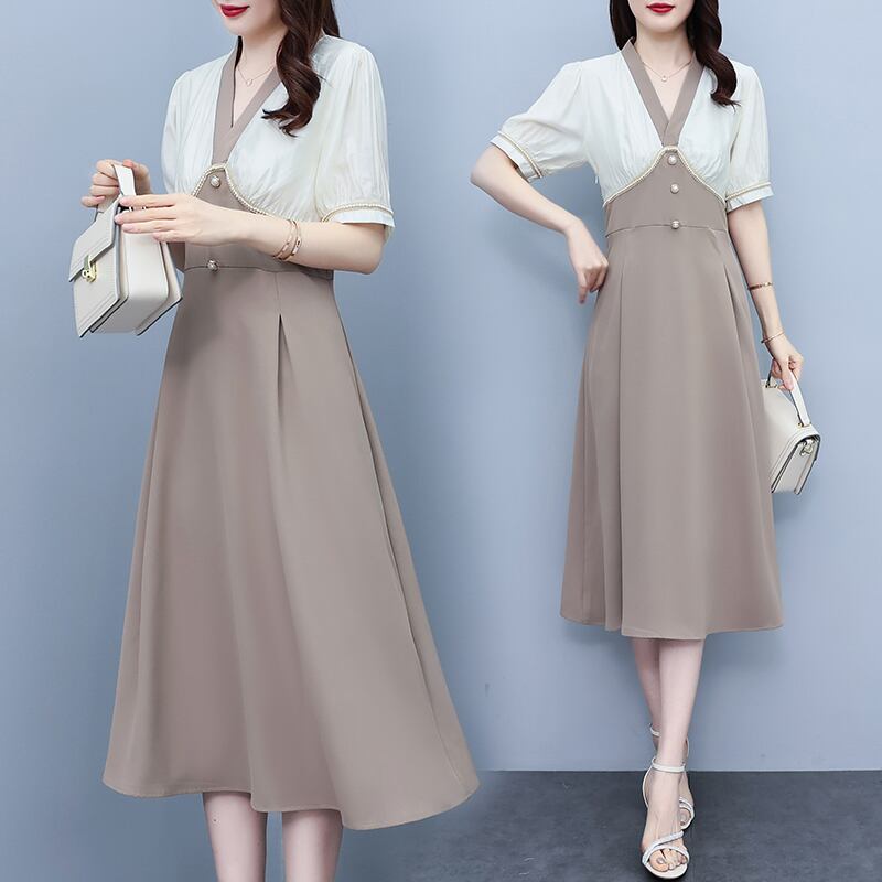 ドレス サマーロングスカート ウェストVネック 大きめサイズ 夏物 ステッチ muto24780503911