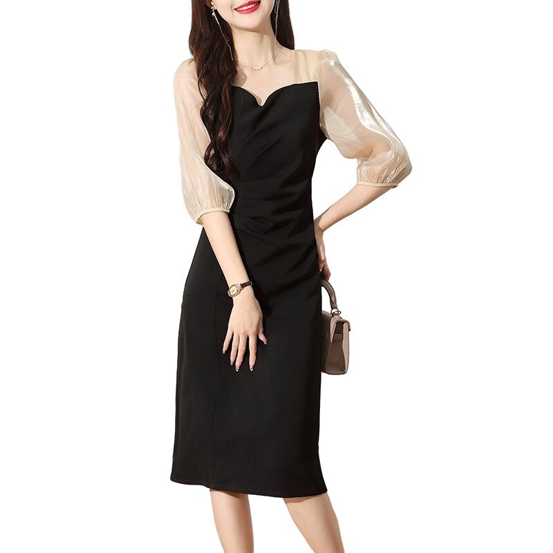 ブラックスリムロングスカート サマーウェスト薄手ドレス 大きめサイズ 夏物 muto59202798367