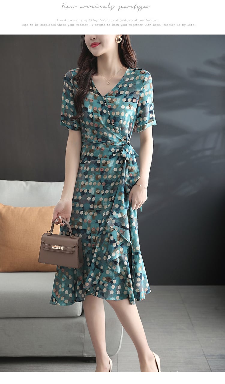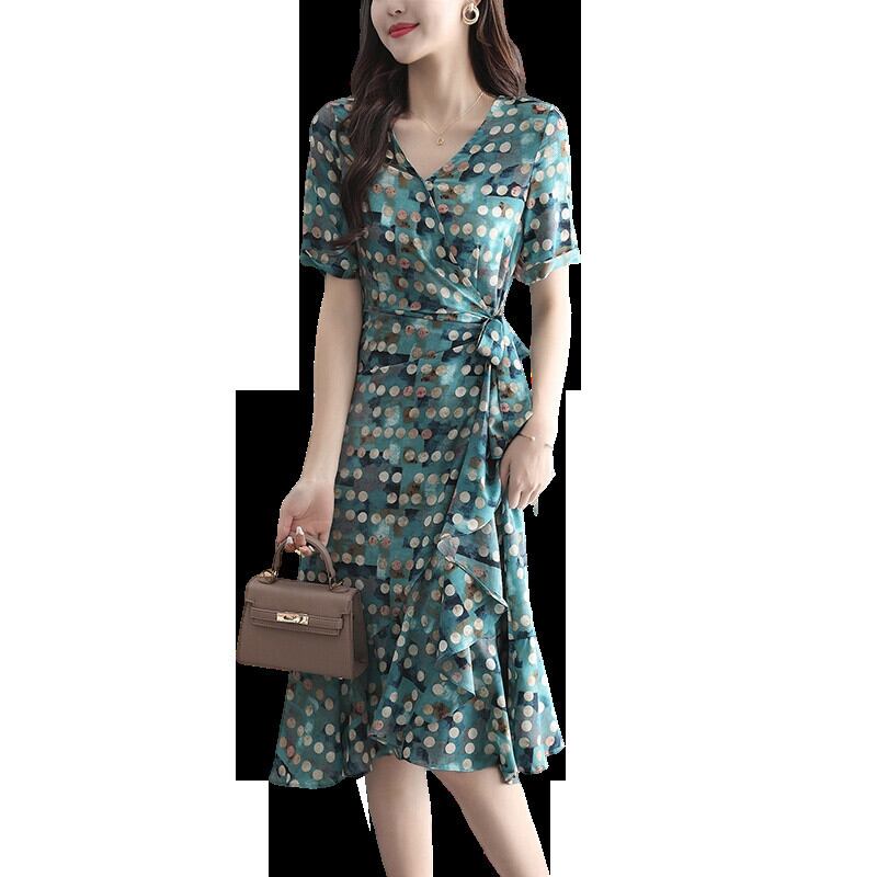 スタンダードVネックドレス サマーウェスト薄手ロングスカート レトロ 大きめサイズ 夏物 muto68170645402