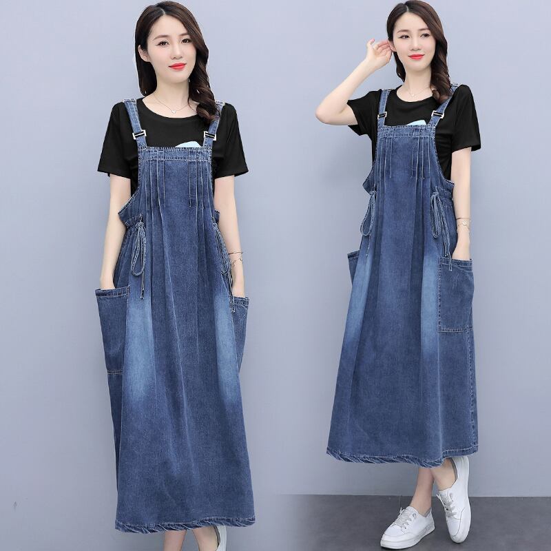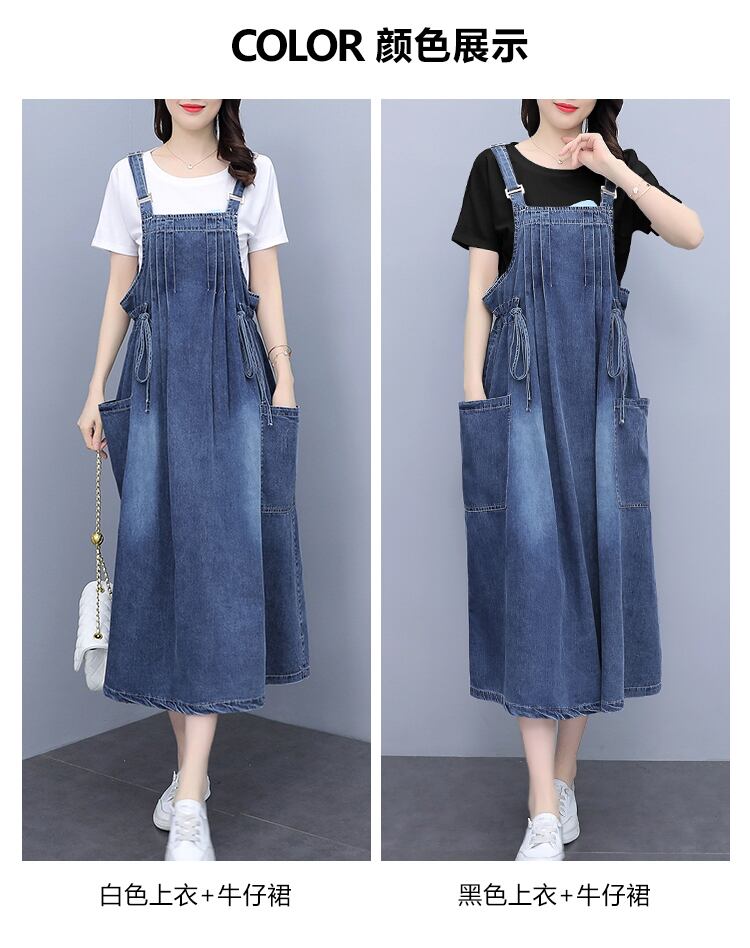 色:ブラックT-shirt+ブルーデニムスカート,ホワイトT-shirt+ブルーデニムスカート