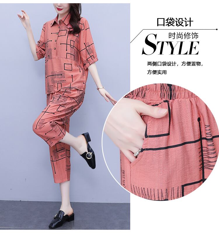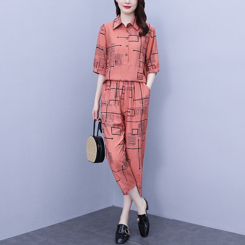 シャツ セット サマースタイルルーズ薄手トップス パンツ 大きめサイズ 夏物 muto73817394865