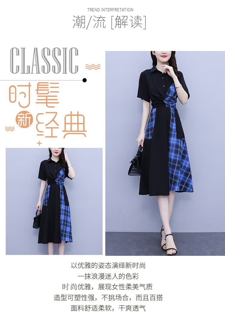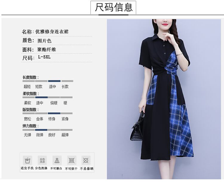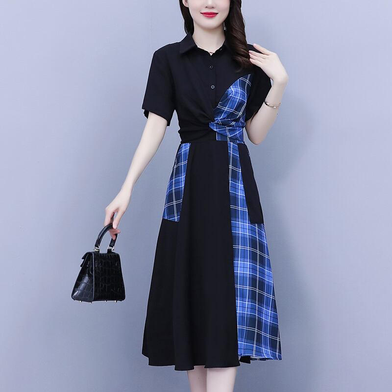 スリム格子柄スカート サマーストレッチバンドウェストドレス レディース エラスティック 伸縮 大きめサイズ 夏物 muto96143417662