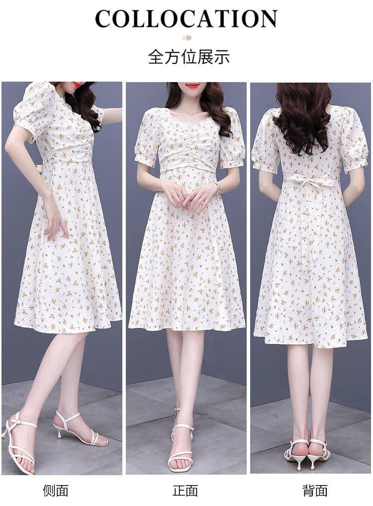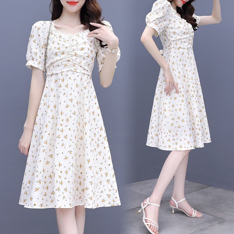 フローラルドレス サマーウェスト薄手スカート 大きめサイズ 夏物 花柄 スクウェア muto1582911028