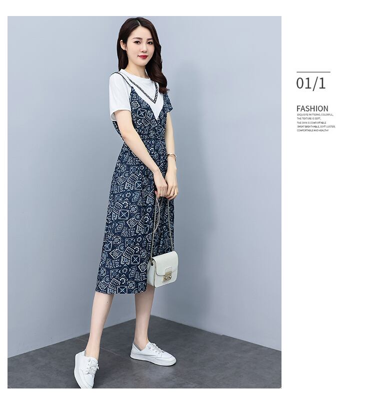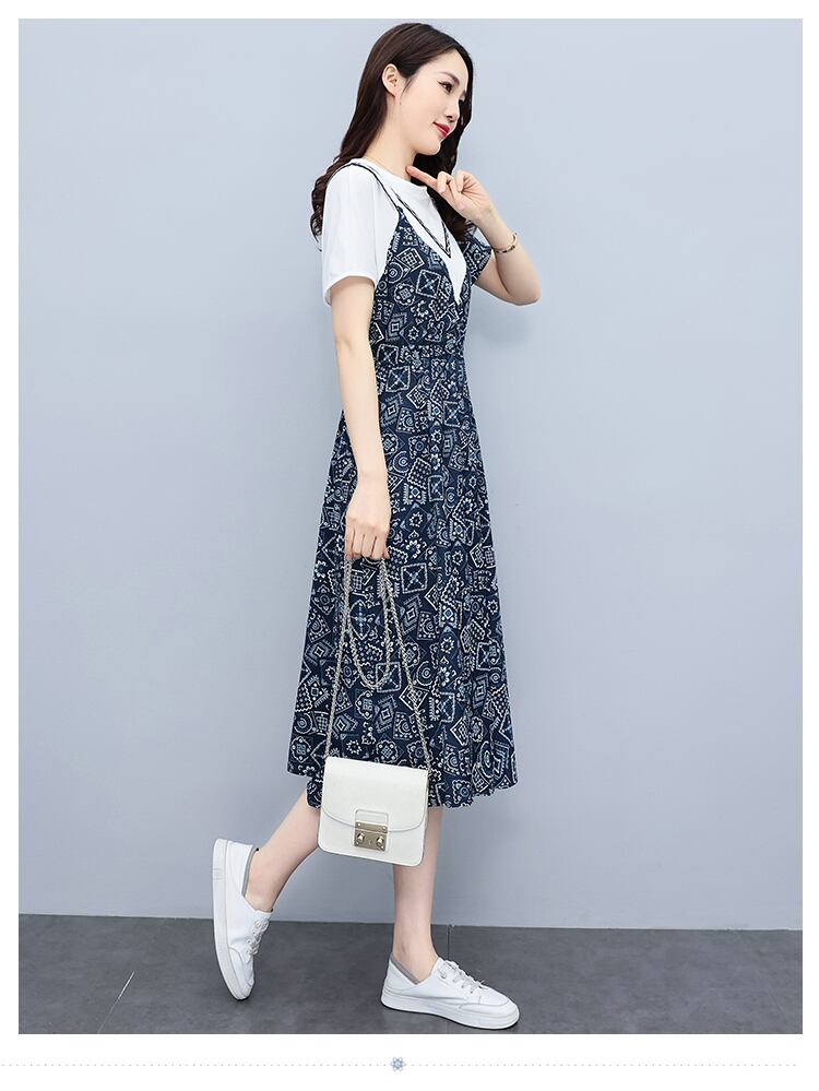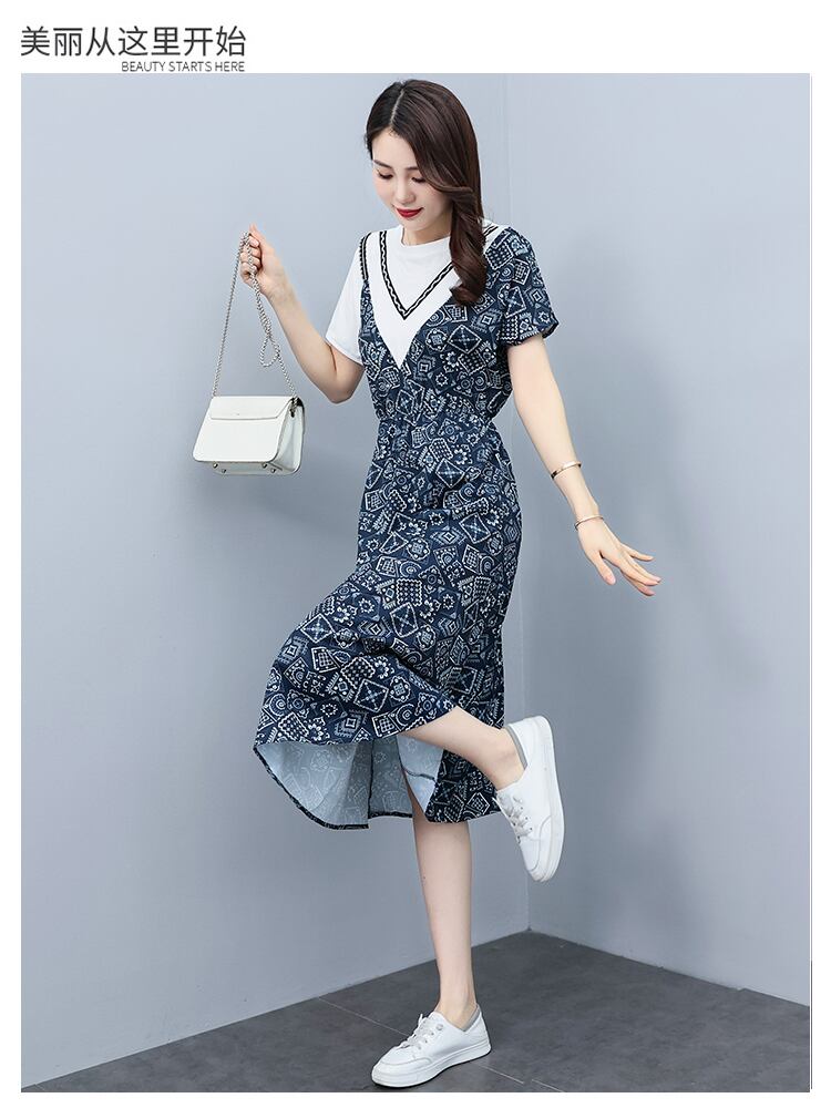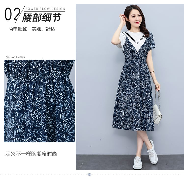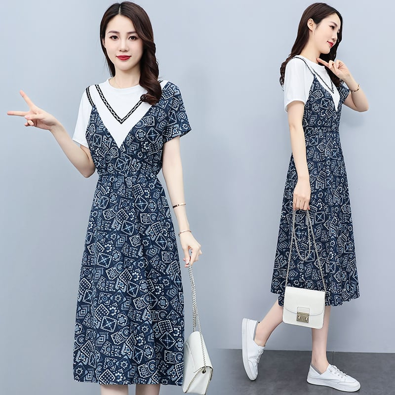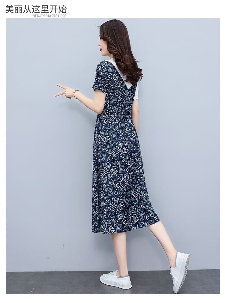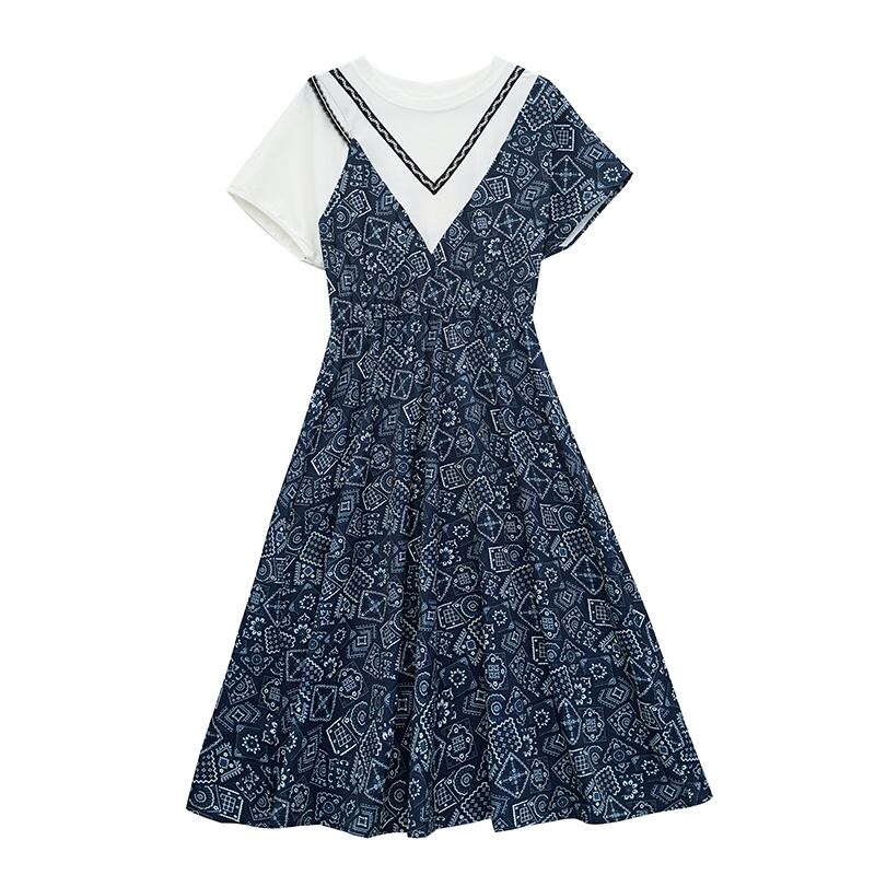 ドレス サマーウェストプリントAラインスカート 大きめサイズ 夏物 muto51954710853