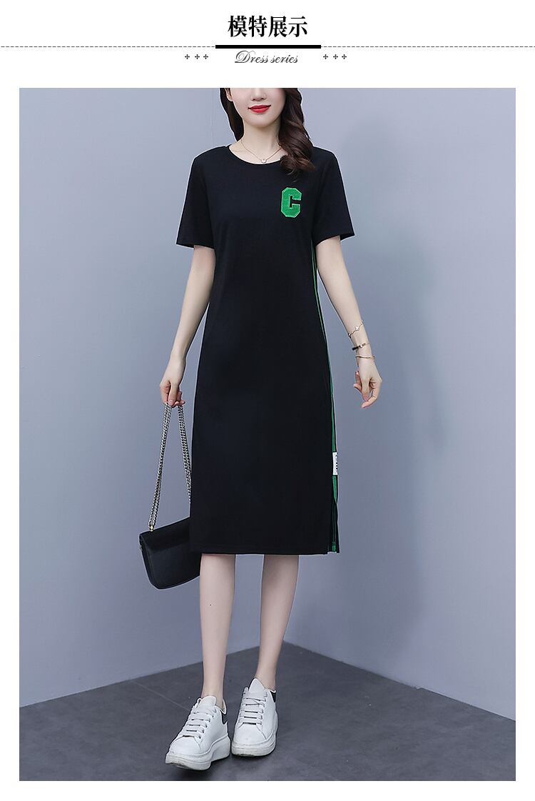 ラウンドネックカラーカジュアルドレス サマースリムスカート 大きめサイズ 夏物 Oネック muto90524257560