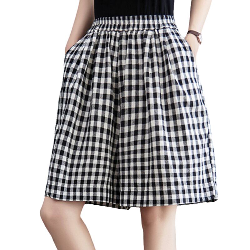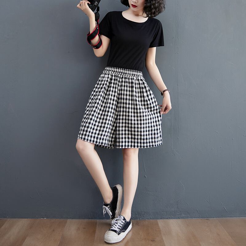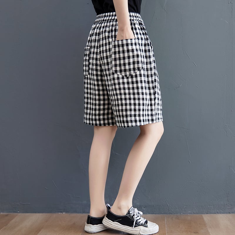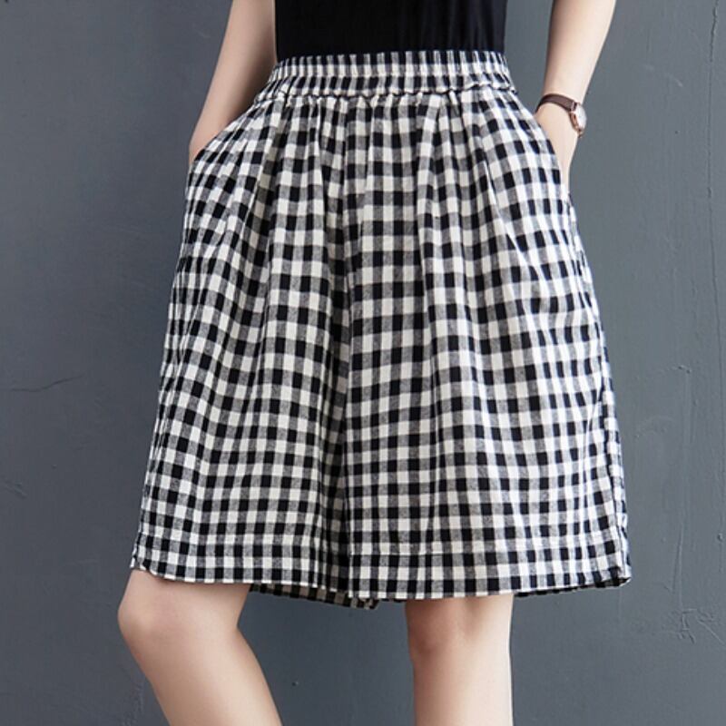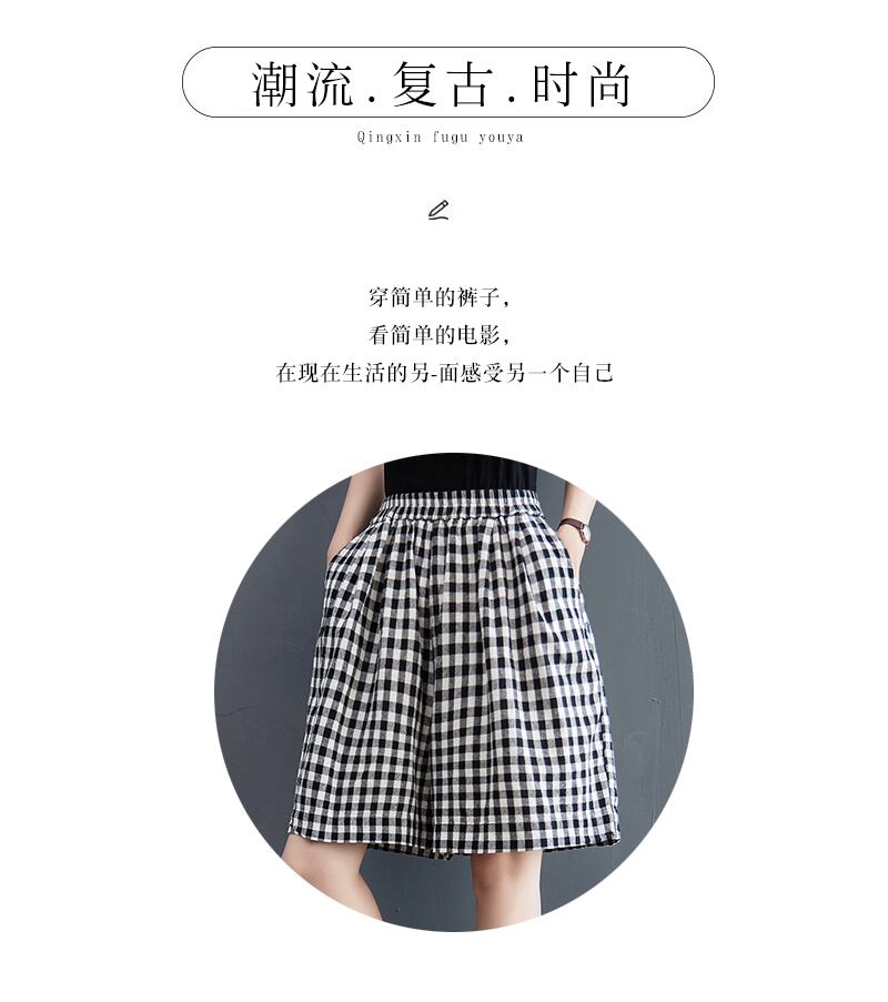 スタンダード薄手カジュアルパンツ サマー格子柄ショーツ ルーズ コットン レトロ 大きめサイズ 夏物 ブルマー muto62692601853