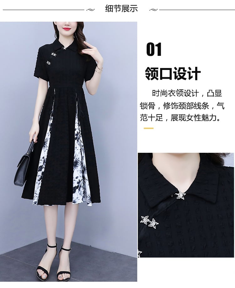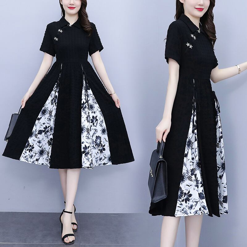 ドレス サマー薄手プリントカラースカート 大きめサイズ 夏物 ステッチ muto35013560529