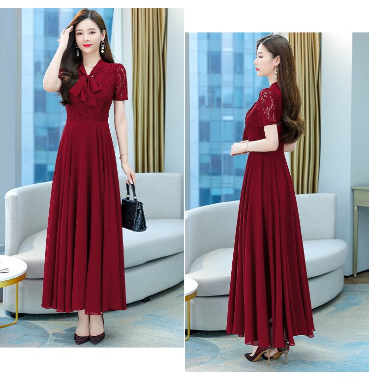 ブラックロングドレス サマーウェスト薄手Vネックシフォンスカート 大きめサイズ 夏物 muto12352897669