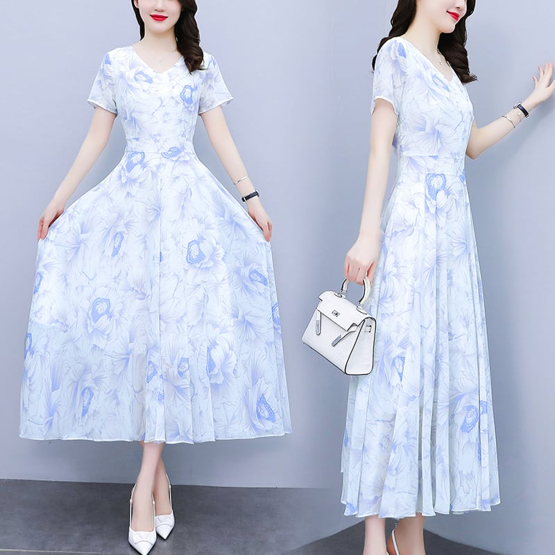フローラルシフォンドレス サマーロングスカート 大きめサイズ 夏物 花柄 muto84287751947