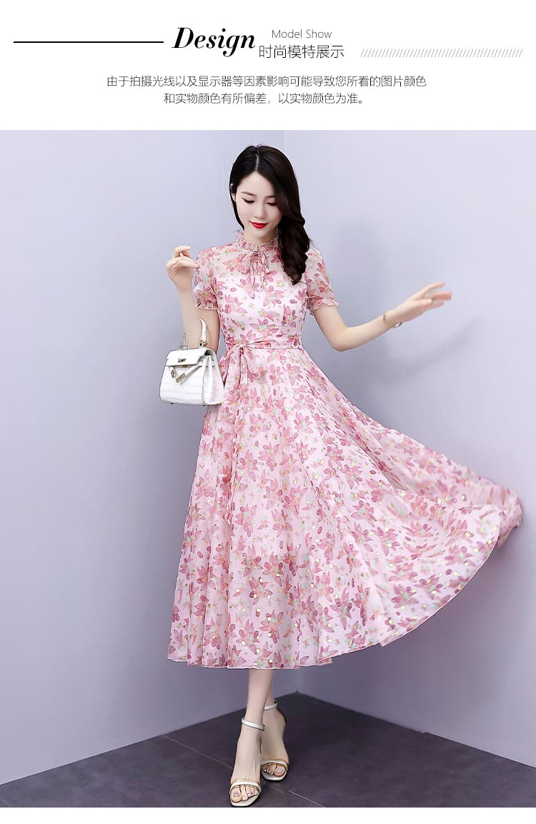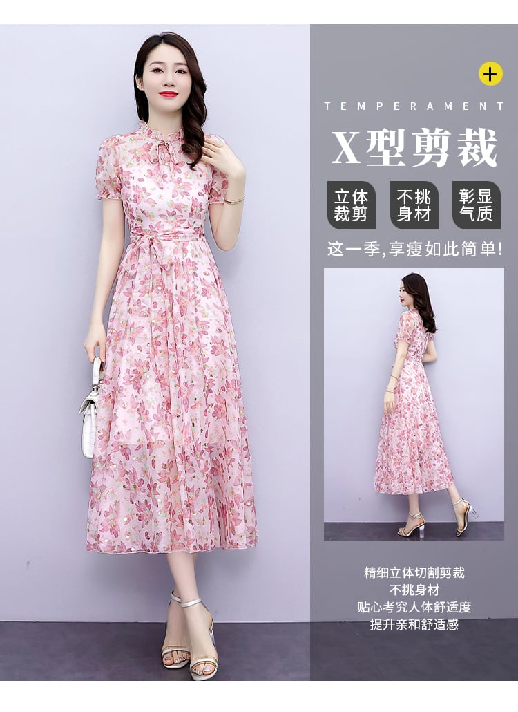 フローラルシフォンドレス サマースリムロングスカート 大きめサイズ 夏物 花柄 muto17177831820