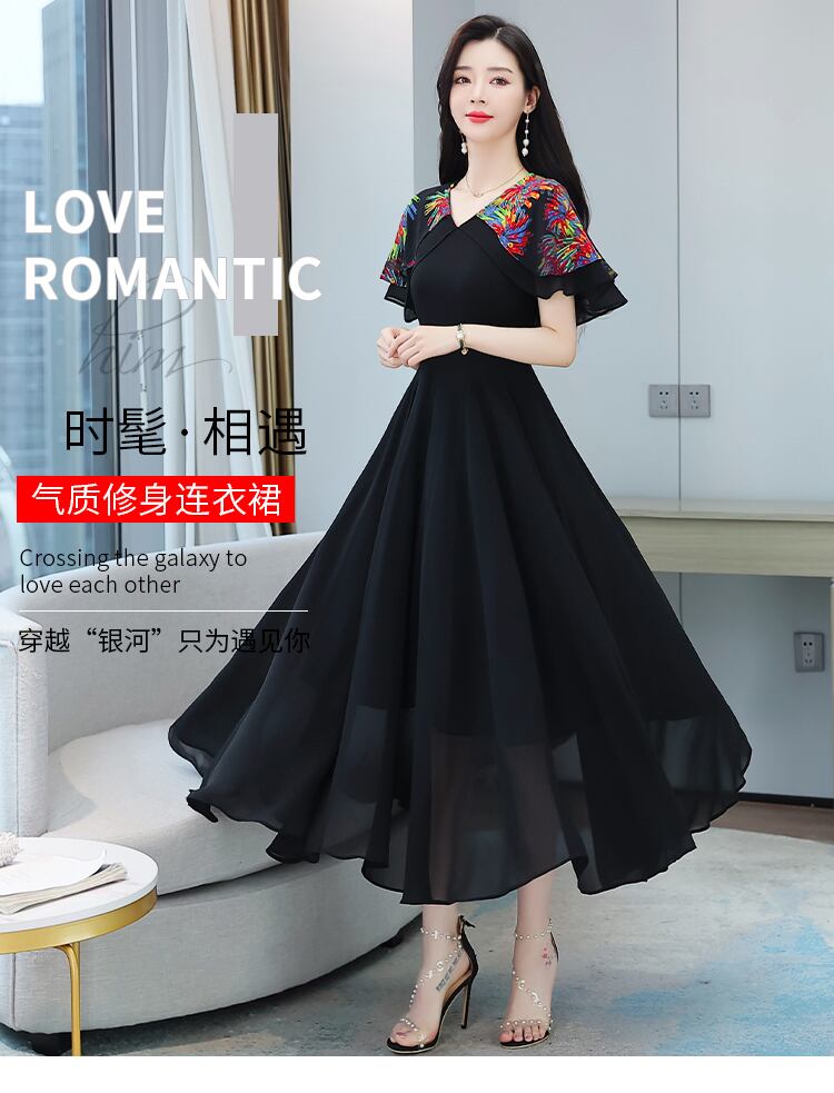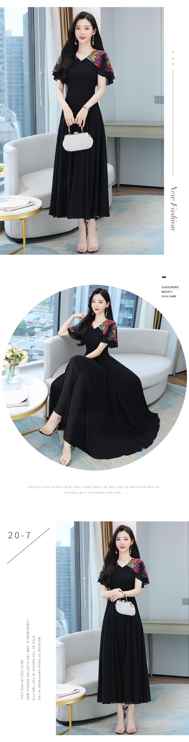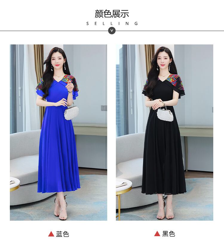 ドレス Vネックスリムシフォンロング半袖スリーブサマースカート ショート ハーフスリーブ 大きめサイズ 夏物 ビーチ muto21386623702
