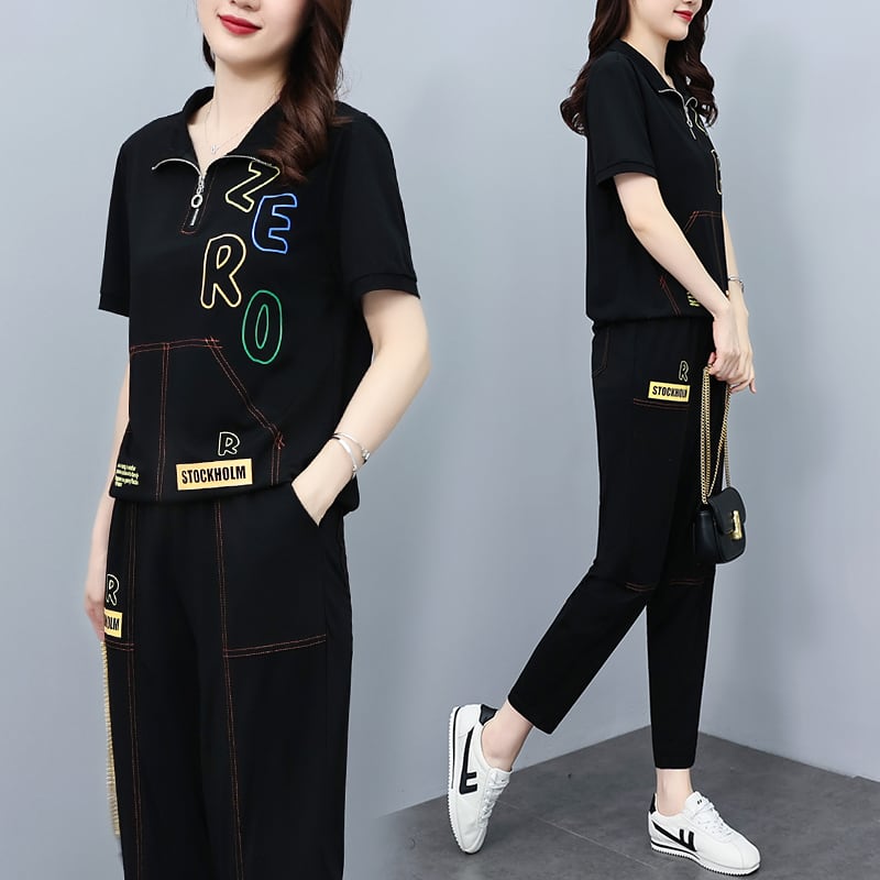 サマープリントセーター カジュアルセット 大きめサイズ 夏物 muto13658409836
