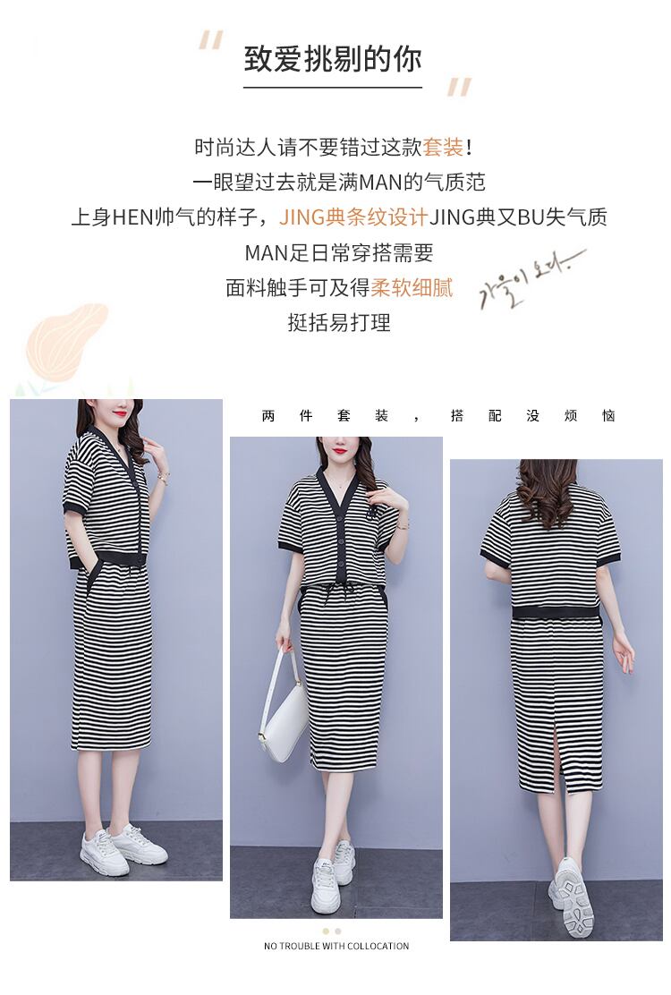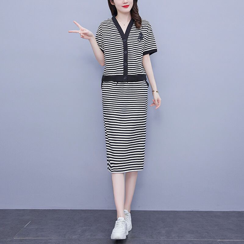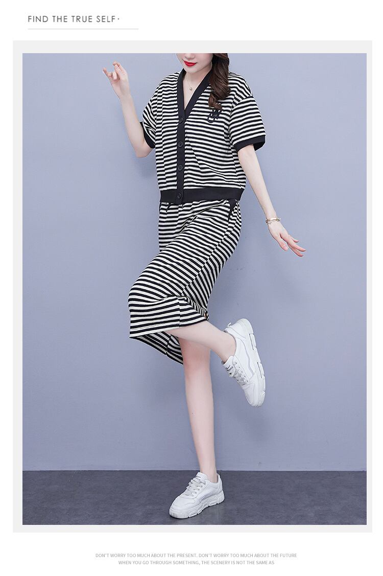 ストライプドレス サマースリムVネックカーディガンスカート セット 大きめサイズ 夏物 muto69679018990