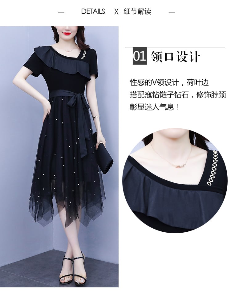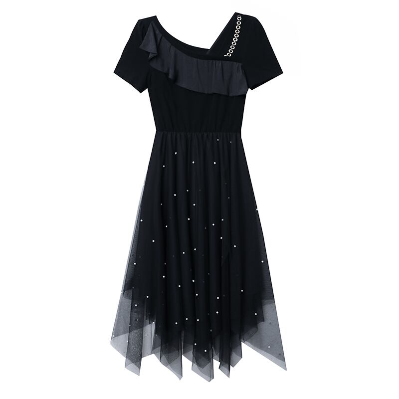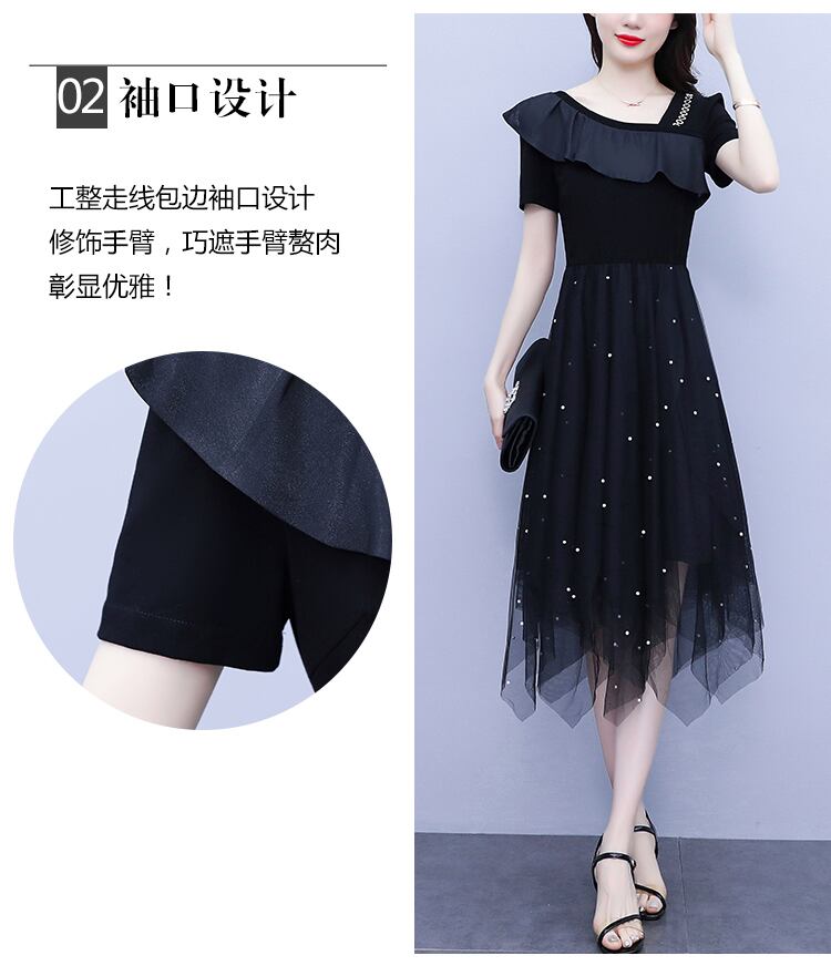 メッシュウェストスカート サマー薄手ドレス 大きめサイズ 夏物 ステッチ muto38511890582