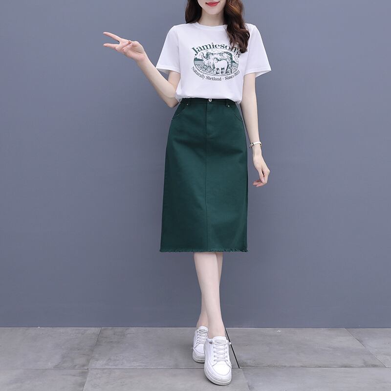 色:ホワイトT+グリーンスカート