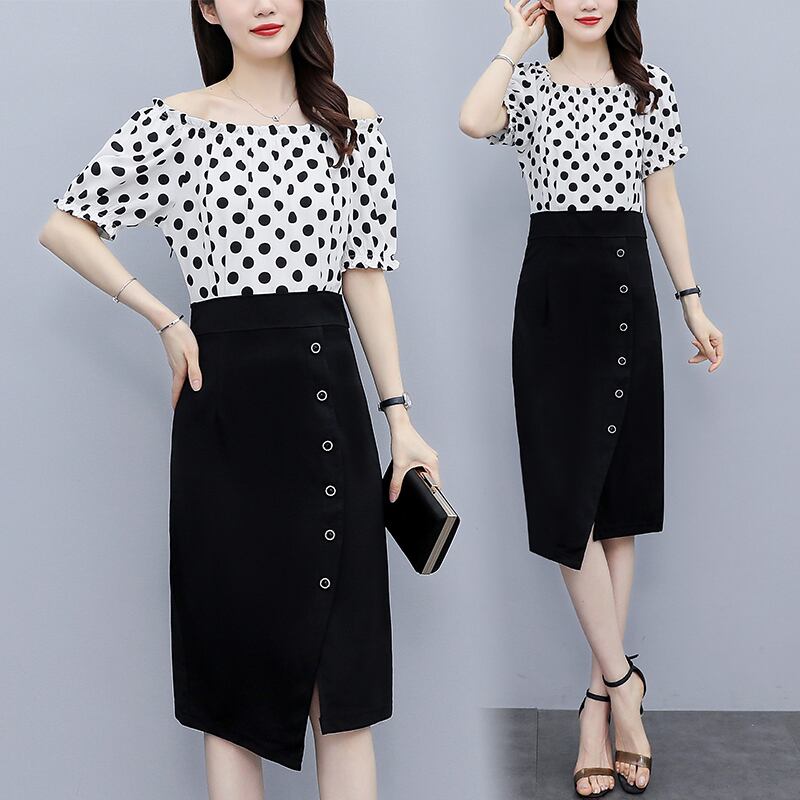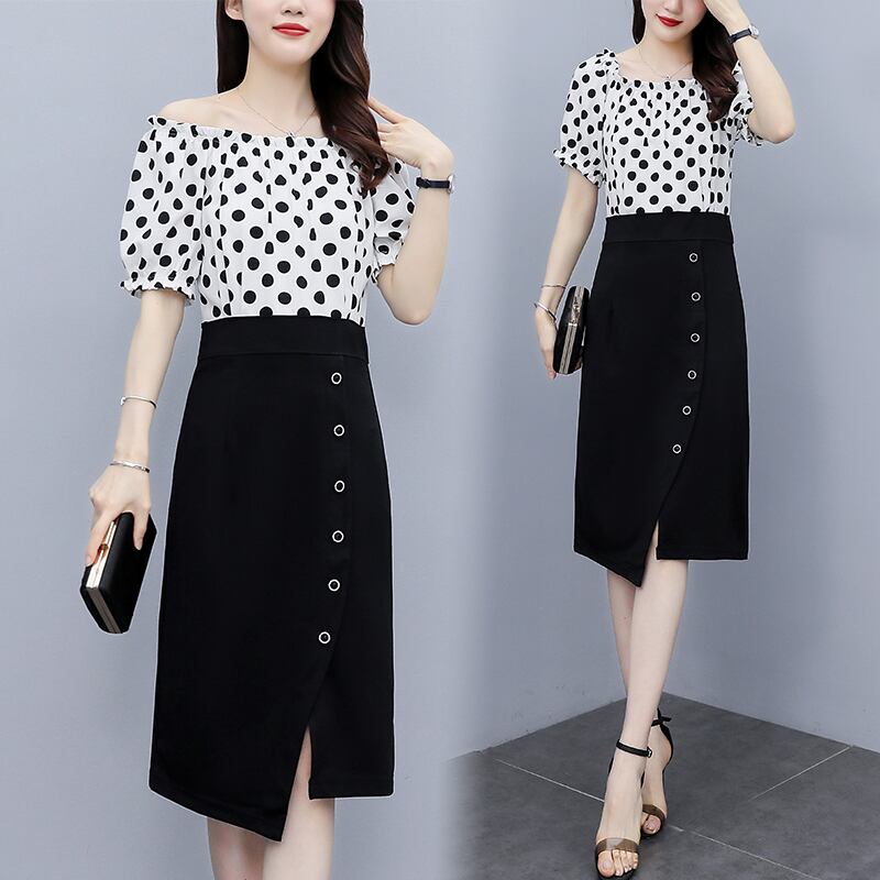 水玉ドレス サマースカート 大きめサイズ 夏物 ステッチ muto66946907617
