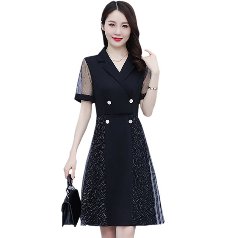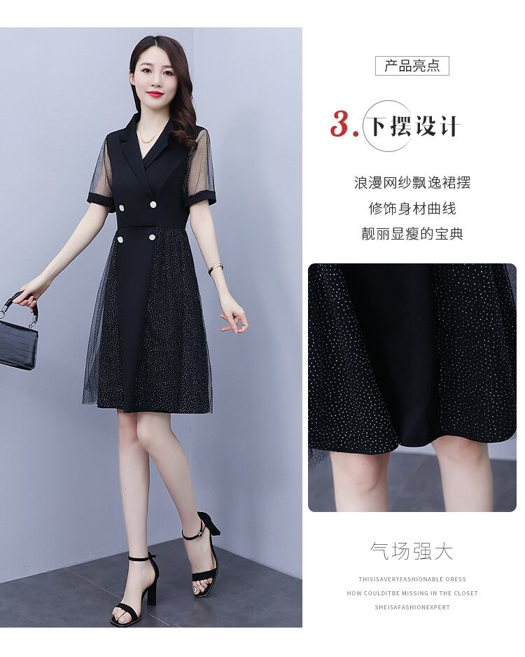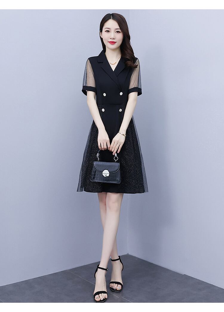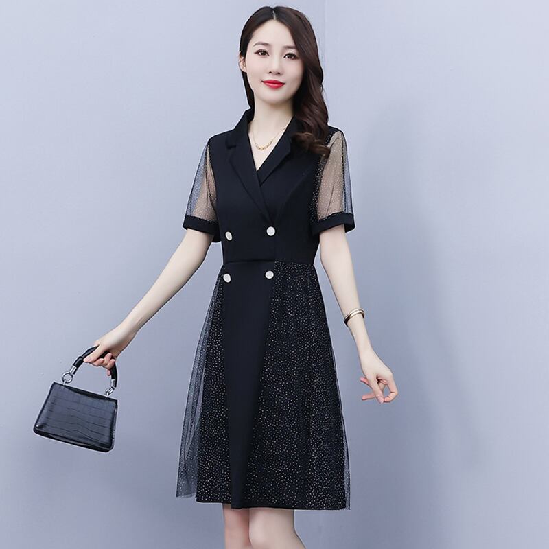 カラーメッシュドレス サマースリム 大きめサイズ 夏物 muto47177808073
