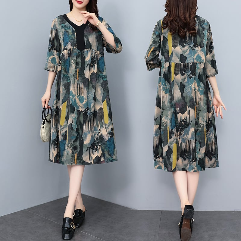 ドレス サマースタイルロングスカート プリント 大きめサイズ 夏物 muto62082561570