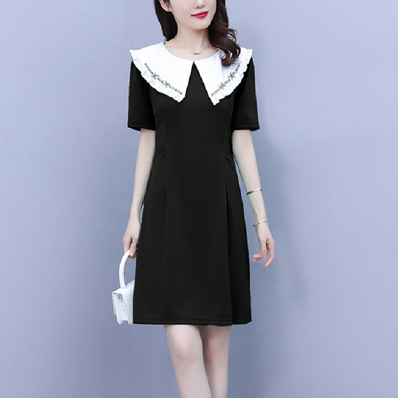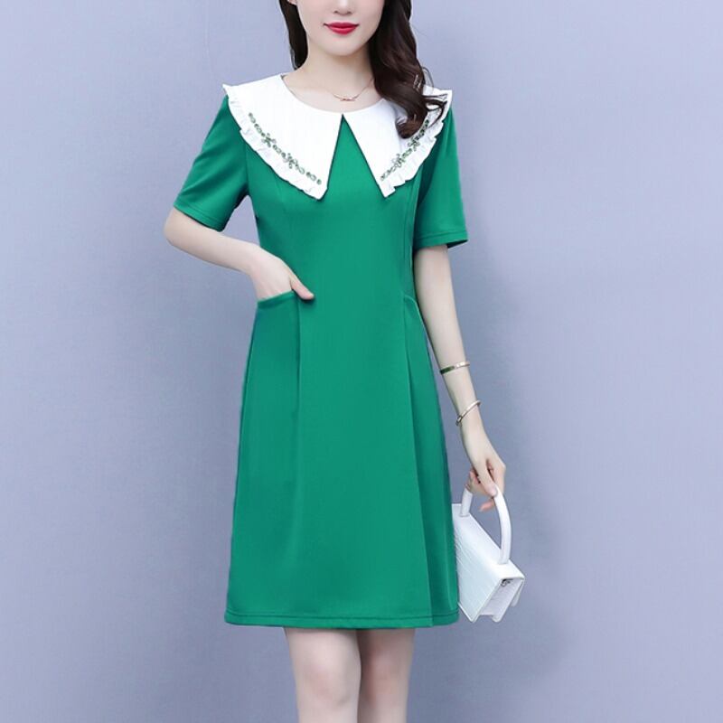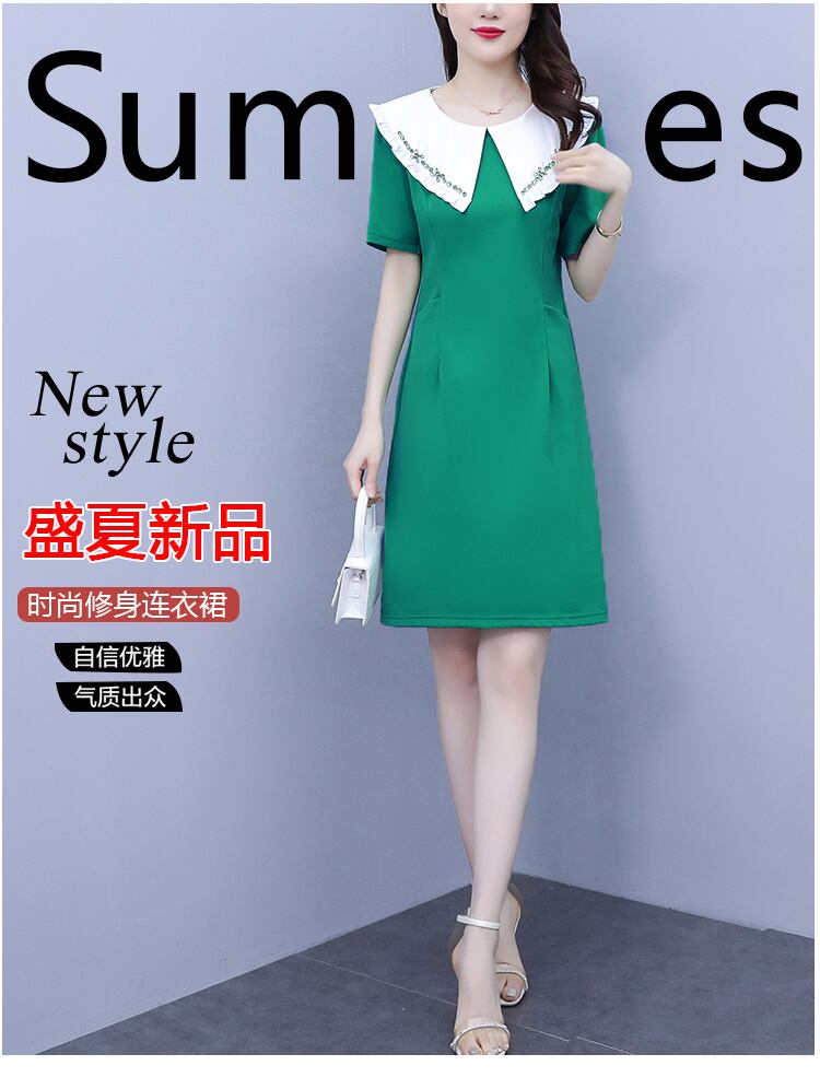 ショートドレス サマースタイルスリムカラーAラインスカート 大きめサイズ 夏物 muto49120740335