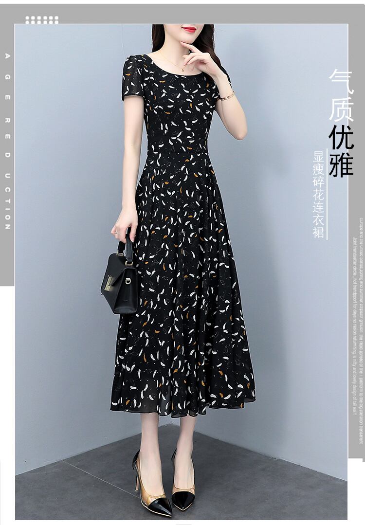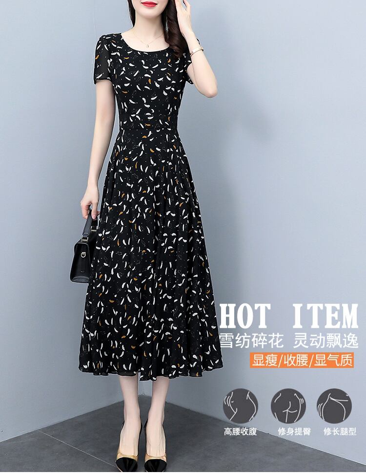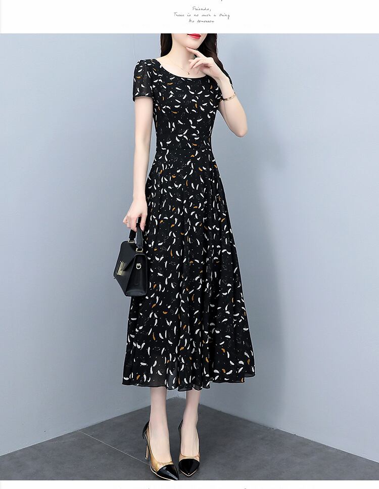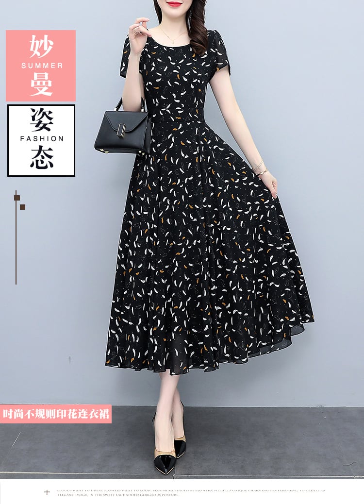 サマーフローラルシフォンドレス ロングウェストスリムスカート 大きめサイズ 夏物 花柄 muto40831655320