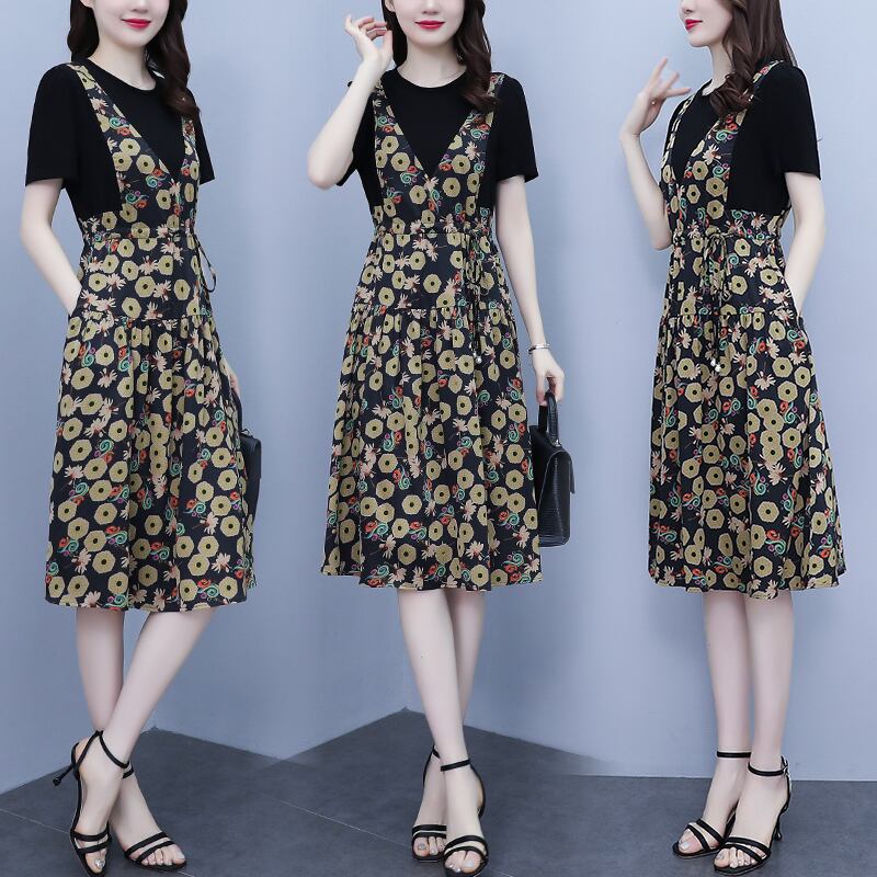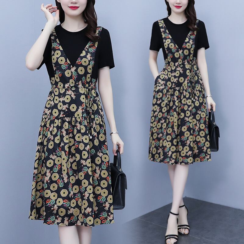 シフォンスカート 薄手フローラルドレス 大きめサイズ 花柄 ステッチ muto42141054975