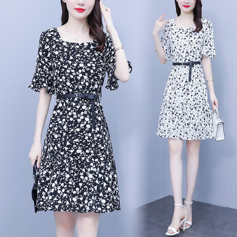 ドレス サマーシフォンプリント柄スカート 大きめサイズ 夏物 muto38831355807
