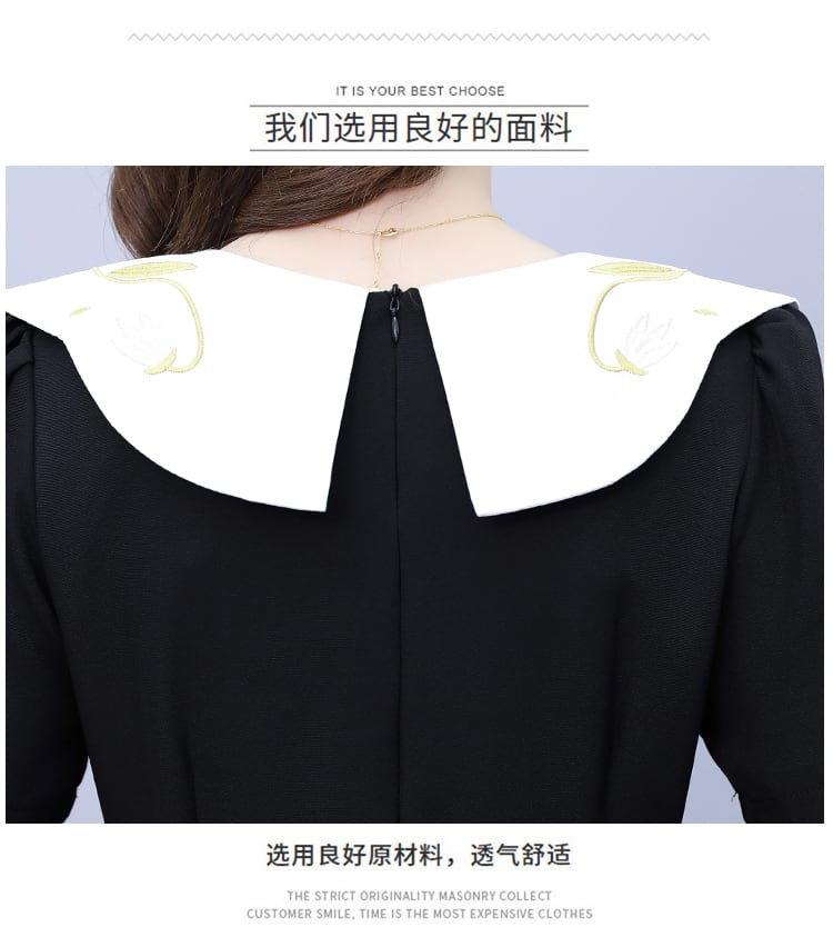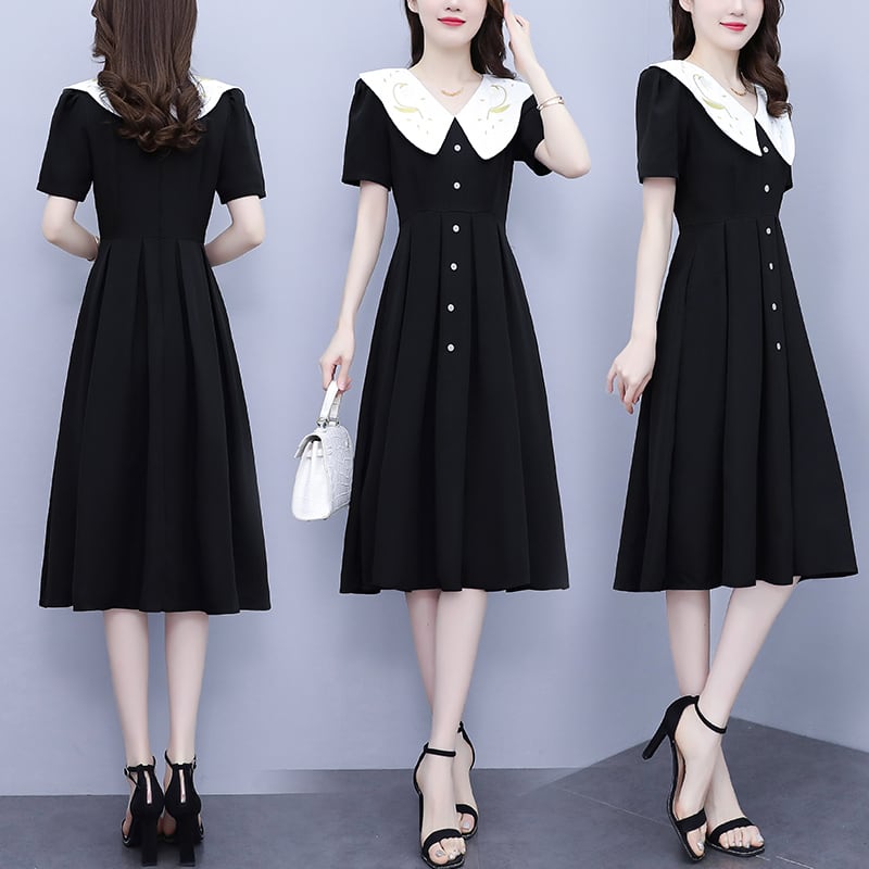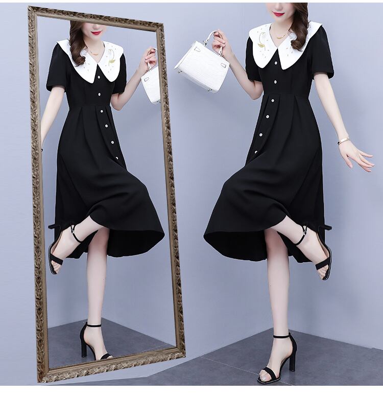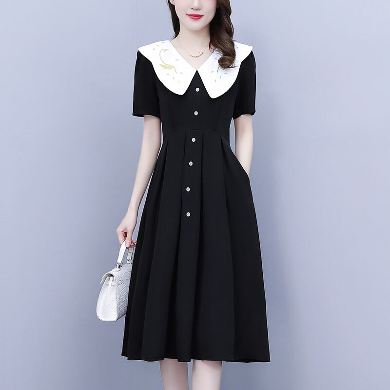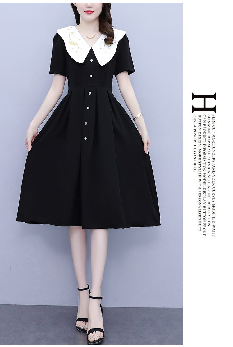 Butterflyデザイン カラースタンダードドレス サマーハイウェストウェストスリムVネックブラック レッド レトロ 刺繍 大きめサイズ 夏物 muto28513340468