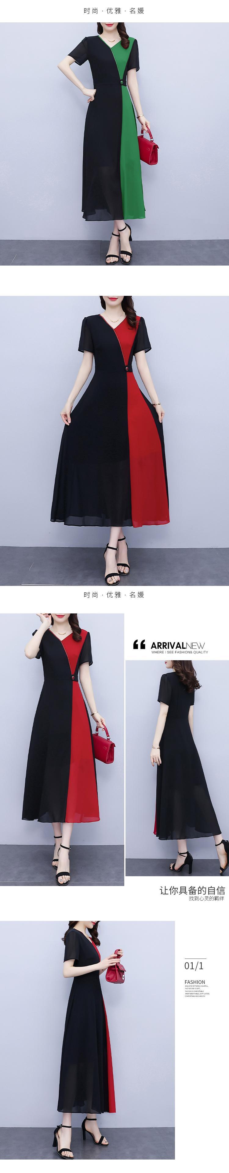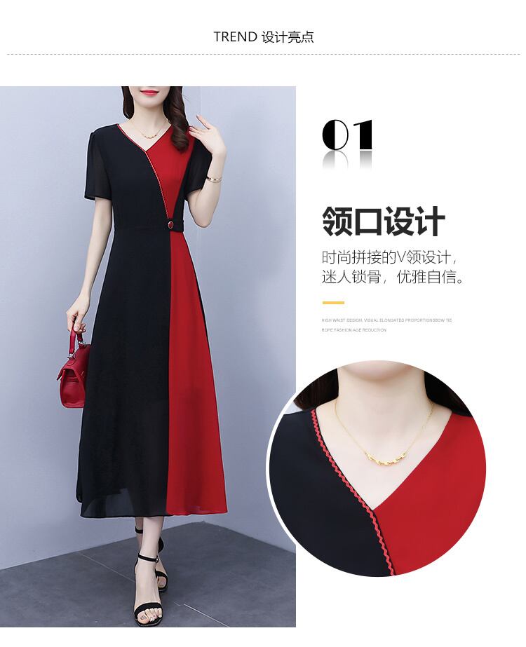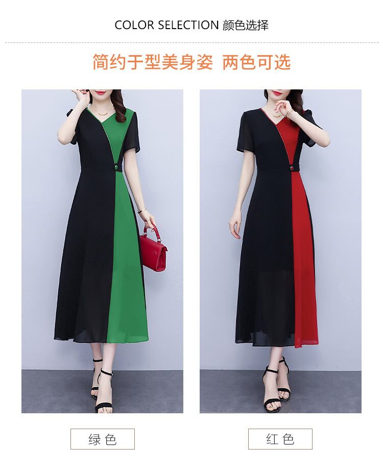 Vネックドレス サマースリムカラーAラインロングスカート 大きめサイズ 夏物 ステッチ muto37520752643