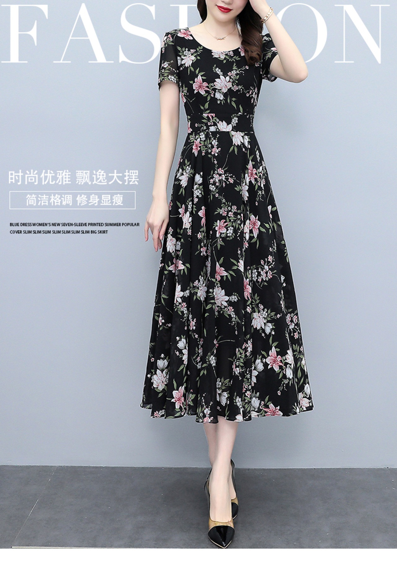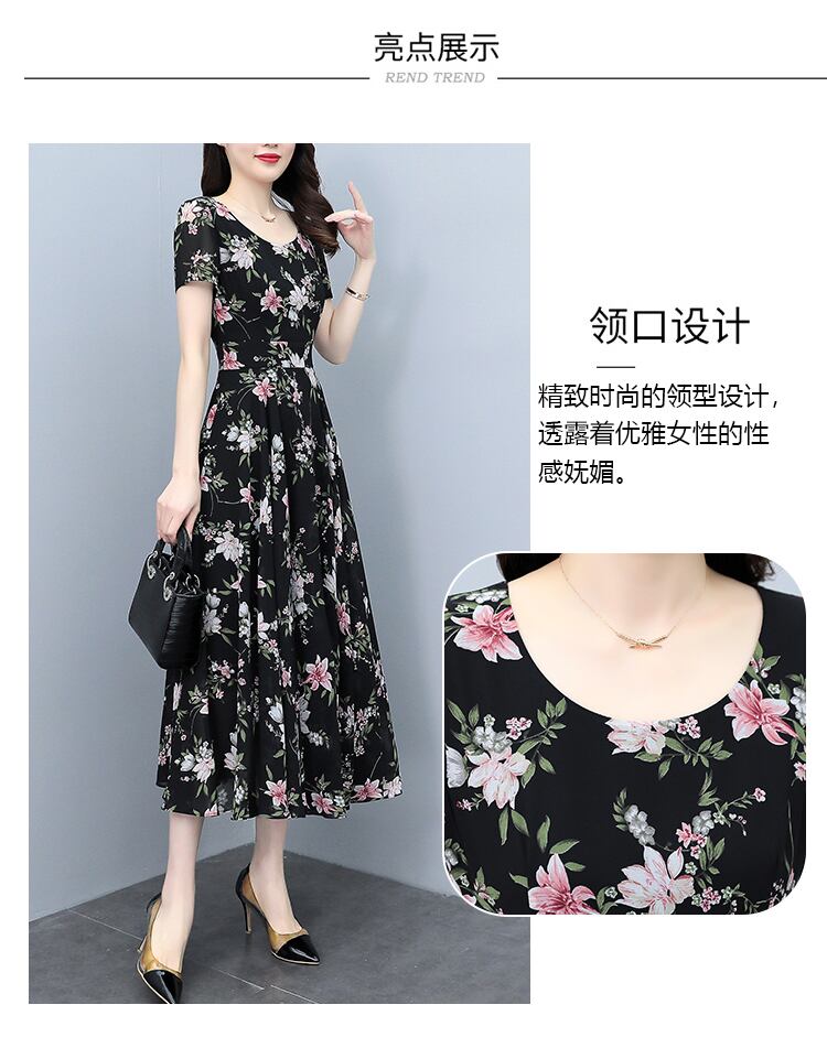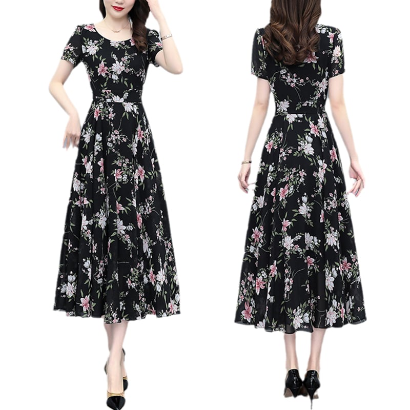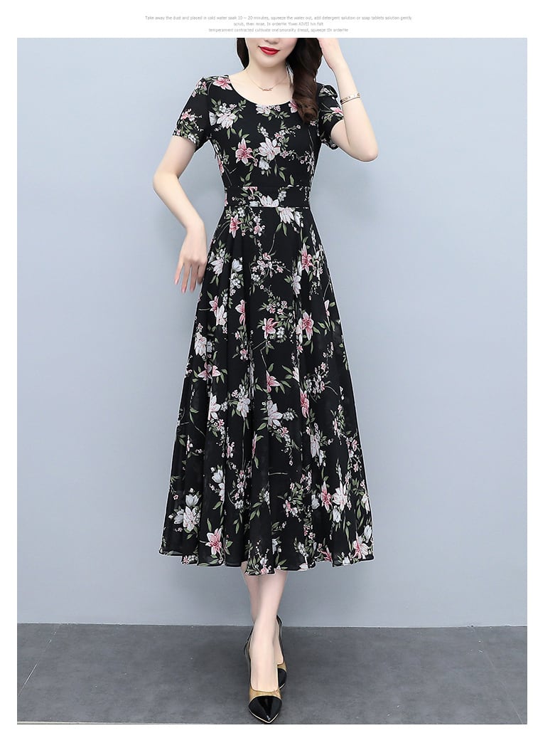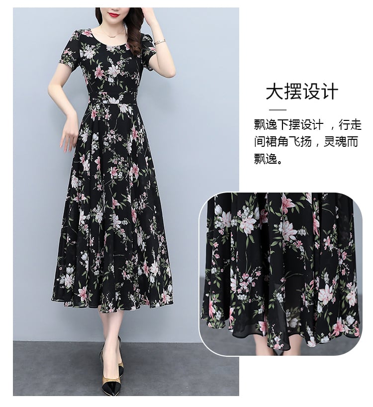 フローラルシフォンドレス サマースタイルウェスト薄手ロングスカート 大きめサイズ 夏物 花柄 muto97092695822
