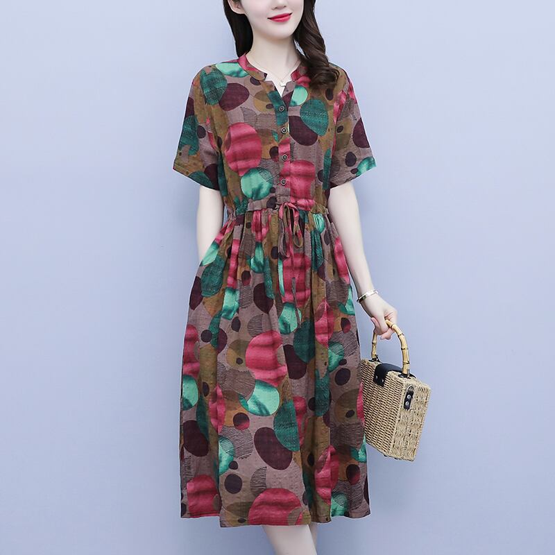 ドレス サマースタイルウェスト薄手Aラインスカート コットン 大きめサイズ 夏物 muto22860032316