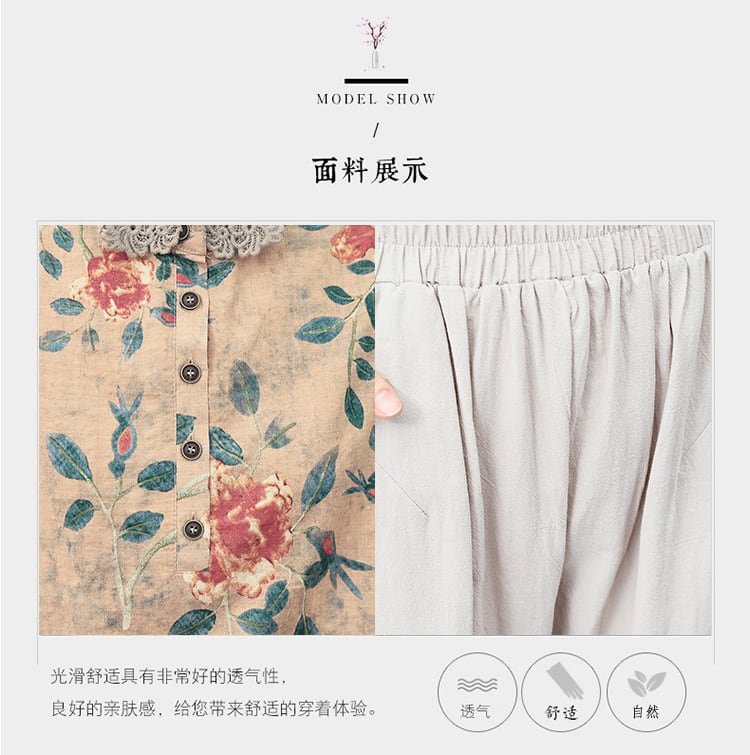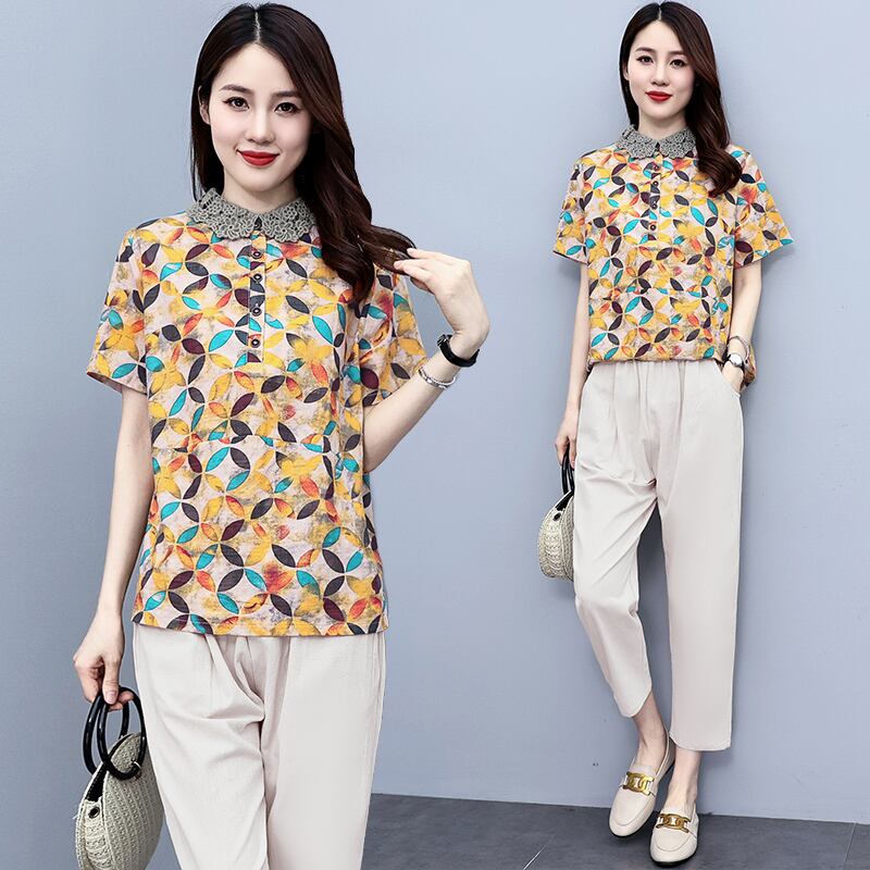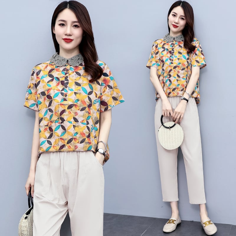 サマールーズ薄手トップス シャツ パンツ カジュアル コットン 大きめサイズ 夏物 muto95498216812